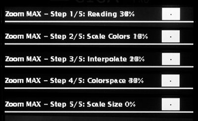 Возможность проверки данных — безусловно, большой плюс данного устройства для фотографа, поскольку дает дополнительную уверенность, что все фотографии можно смело стирать — они надежно сохранены на винчестере. Процесс перекачки может осуществляться в двух режимах: быстром, без показа миниатюр в процессе перекачки, и относительно медленном, с показом. Перенесенные на винчестер фотографии можно просматривать. Для официальных RAW форматов возможен их просмотр в двух режимах: 1) просмотр вложенного JPG файла, если он есть, 2) преобразование RAW формата в цветное изображение силами программного обеспечения GIGA VU PRO. Недокументированные RAW форматы не содержат вложенного JPEG изображения, о чем устройство сразу сообщает. Если попросить их преобразовать внутренними средствами, то устройство соглашается, пишет, что оно проводит ряд преобразований, но в результате мы имеем черный экран.