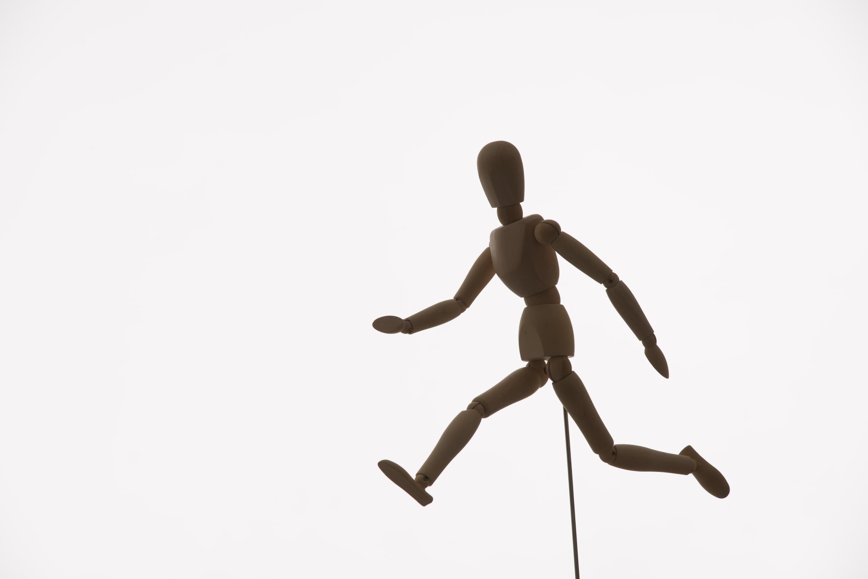 Но начать я решил с самого простого примера: неподвижный объект с четкими контурами, съемка на фотоаппарат, установленный на штативе. Объект съемки освещаем исходя из творческих потребностей. Для своего подвижного манекена я выбрал мягкий рисующий свет слева и моделирующий свет с правой стороны. Про освещение фона на этом этапе не думаем. У меня получился такой кадр: