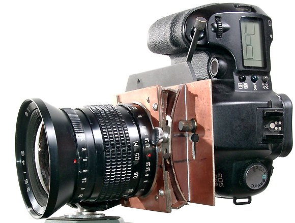 Что касается кривизны поля изображения, то эта аберрация может быть устранена не только за счет конструкции объектива, но и за счет конструкции фотоаппарата. Изогнуть стеклянную фотопластинку, конечно, нереально, а вот изогнуть пленку уже можно, что и было реализовано в некоторых камерах Minox. Вероятно, матрицу тоже не обязательно делать плоской. Однако на современном этапе анастигматами называются объективы, у которых наиболее полно исправлены астигматизм и кривизна поверхности изображения для большого угла поля. Поэтому не будем пытаться искривить матрицу, а попытаемся в полной мере воспользоваться тем фактом, что эти объективы могут хорошо работать в тех случаях, когда объект находится под некоторым углом к оптической оси. Приспособления для поворота и смещения объективов