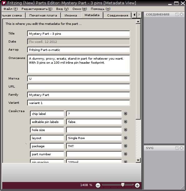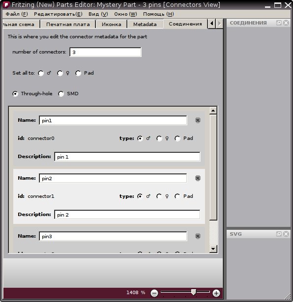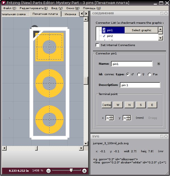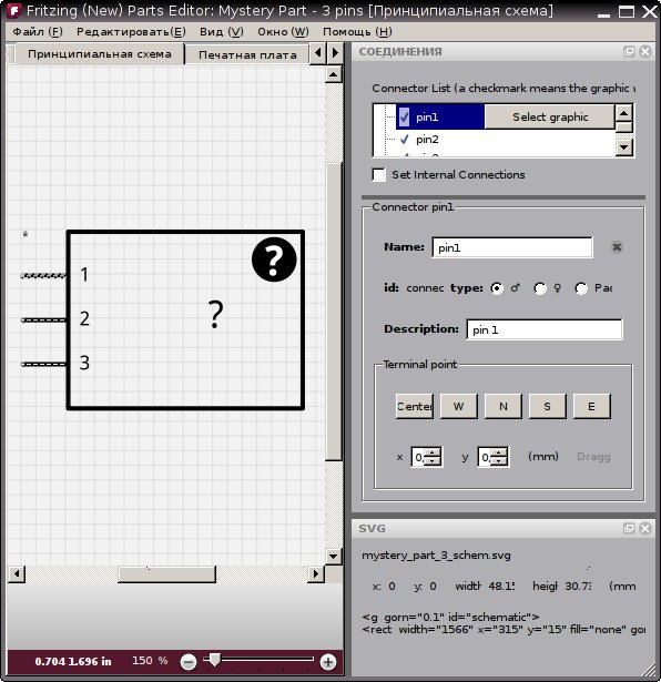 В программе есть и простенький редактор для создания собственных элементов или модернизации уже имеющихся. При создании собственных элементов предлагается брать за основу элемент Mystery Part. В этом элементе можно изменять число контактов. Для редактирования изображений нужен внешний редактор для файлов в формате SVG.