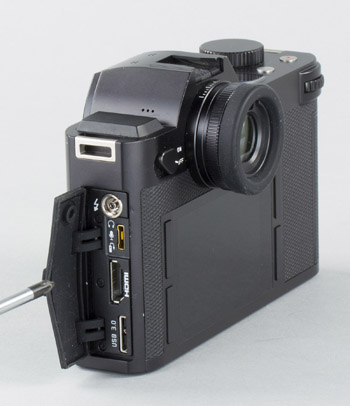 Теперь можно обратить внимание на электронный видоискатель. Пожалуй, на сайте Leica не зря сказано, что его можно принять за оптический. Ничего подобного я раньше не видел — он, действительно, великолепен. А на левой грани под большой резиновой заглушкой расположились разъемы:
