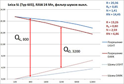 А то, что Leica и Nikon заметно проигрывают флагману Canon, — факт. Чтобы подвести картину шумов, мы размещаем расчетные значения шумов в таблице. Здесь также хорошо видно, что Leica SL «шумит» чуть меньше, чем Nikon D750, но заметно больше, чем Canon EOS-1D X Mark II.