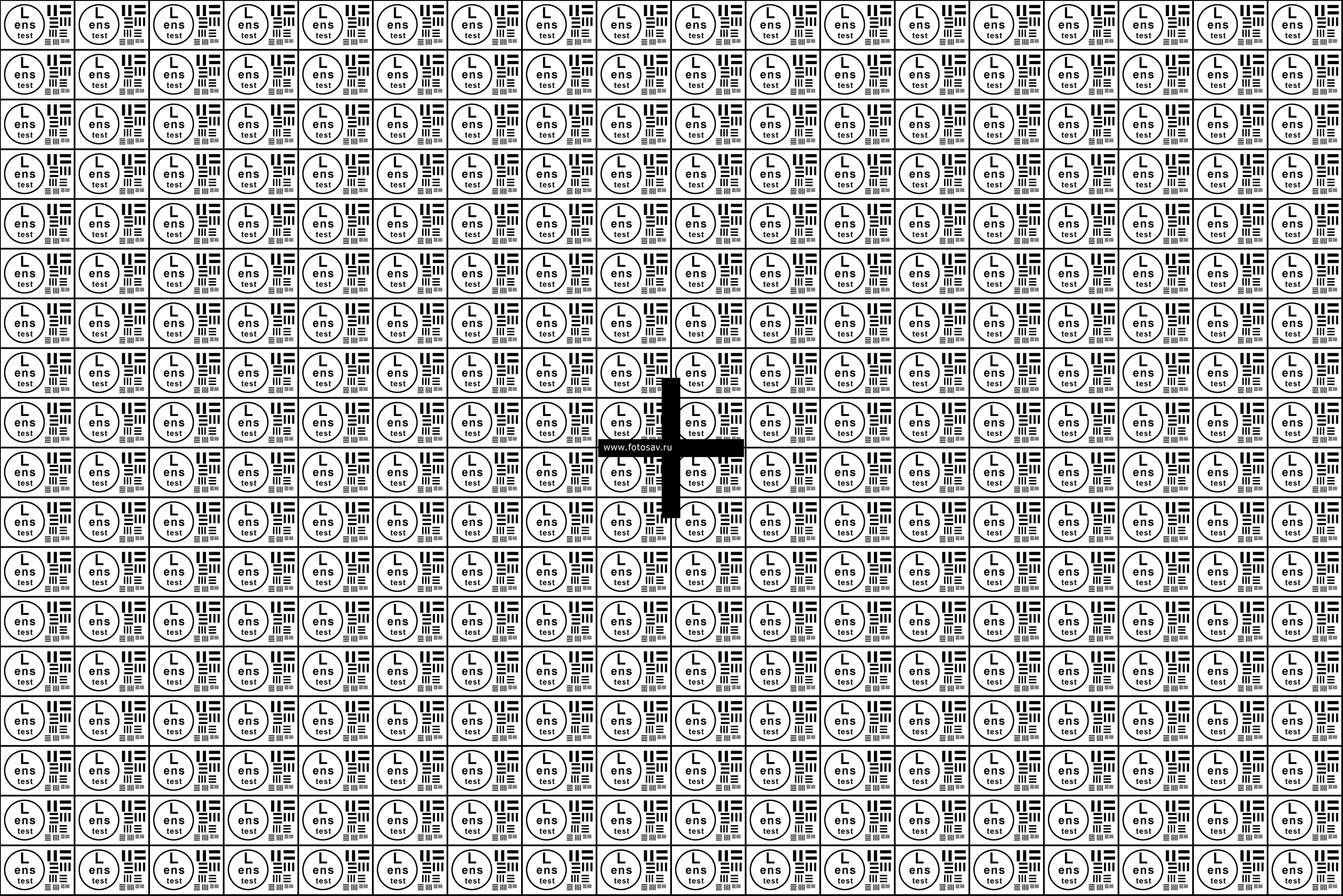 После того как удостоверились в отсутствии бэк-фокуса настало время проверить оптические характеристики: резкость и ее равномерность по полю кадра, а также оценить дисторсию и виньетирование. Для этого понадобится специальная мира распечатанная на лазерном принтере — скачать ее можно здесь (600 dpi, 27×18 см). В крайнем случае подойдет равномерно заполненный мелким текстом газетный лист.