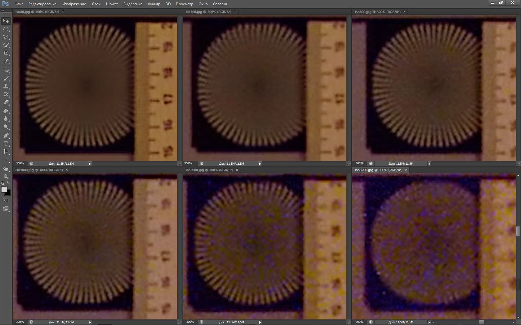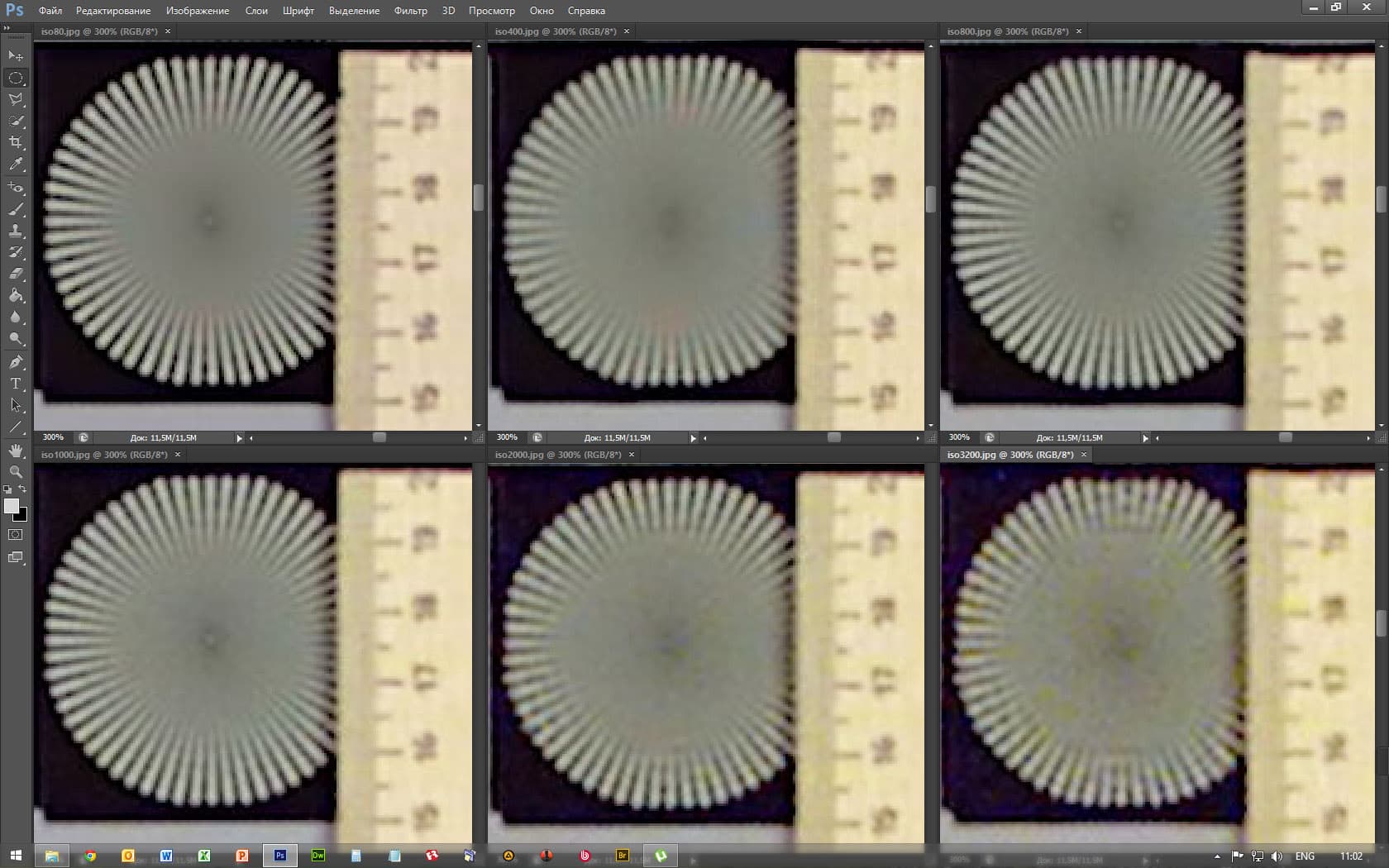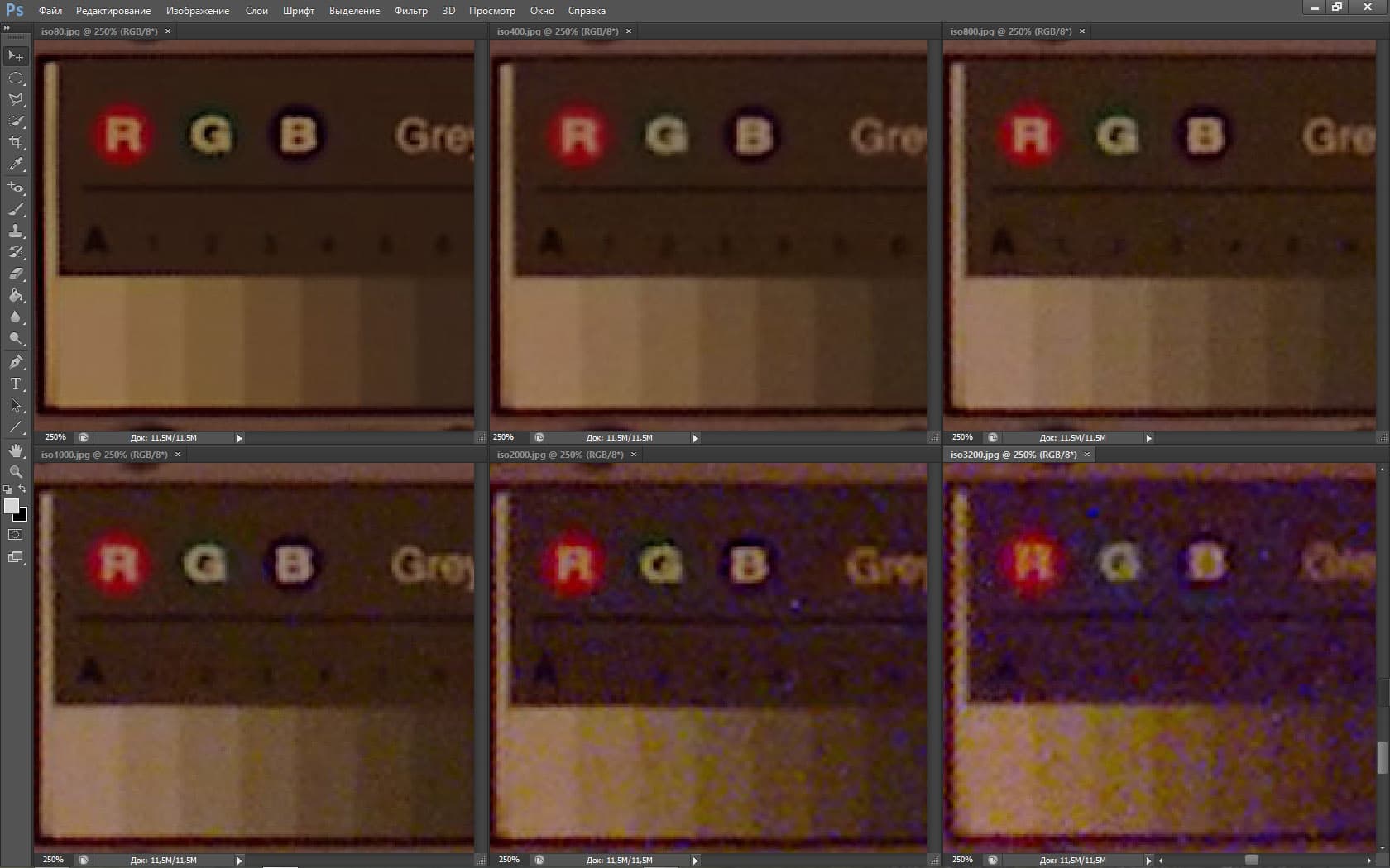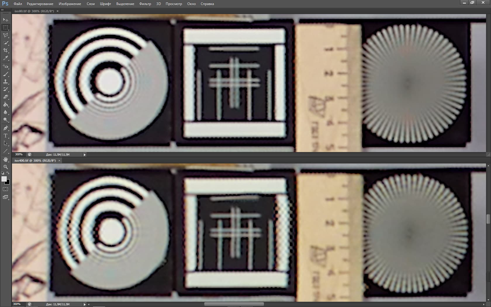 Для нашей задачи — оценки уровня разрешения и шума — лучше всего подходит обычный JPG, сфокусированный точно на плоскости нашего лабораторного стенда. Или обычный TIFF. Но мы выбрали первый, поскольку даже незначительные различия между JPG и TIFF найти практические невозможно.