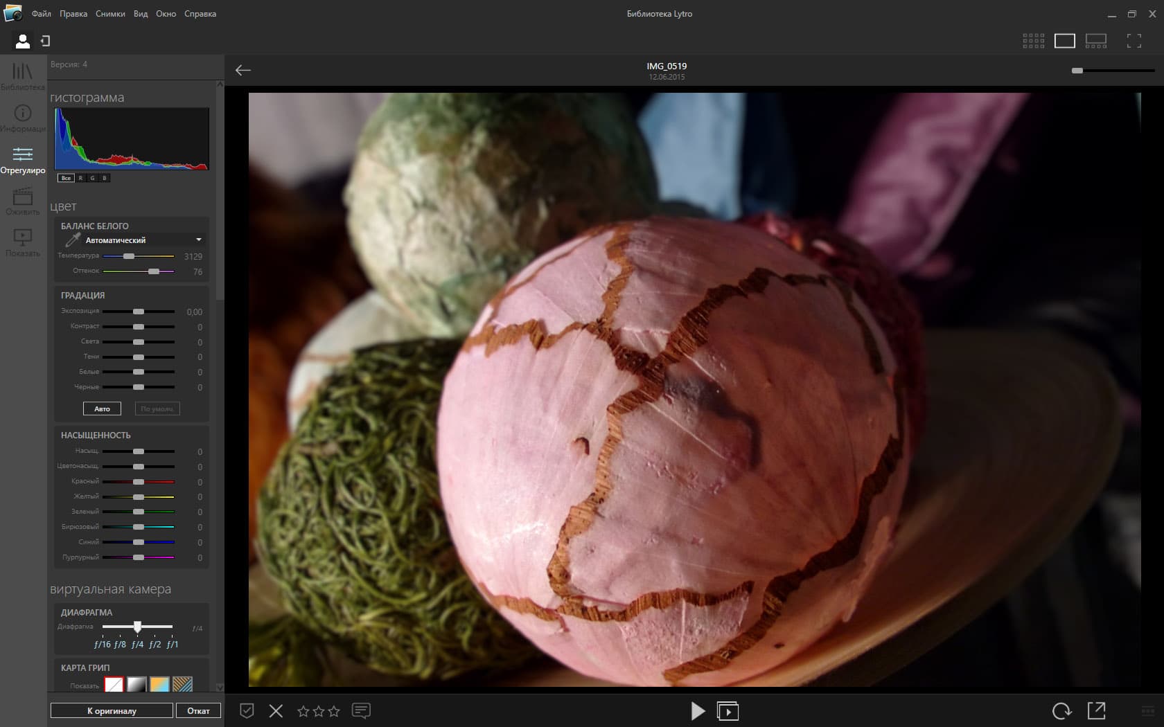 Эта программа — не только проявщик RAW. Без нее даже съемку на компьютере не просмотришь и в онлайн-галерею фотографии не закинешь (и галерея Lytro, и галерея 500px принимают фотографии только через Lytro Desktop).