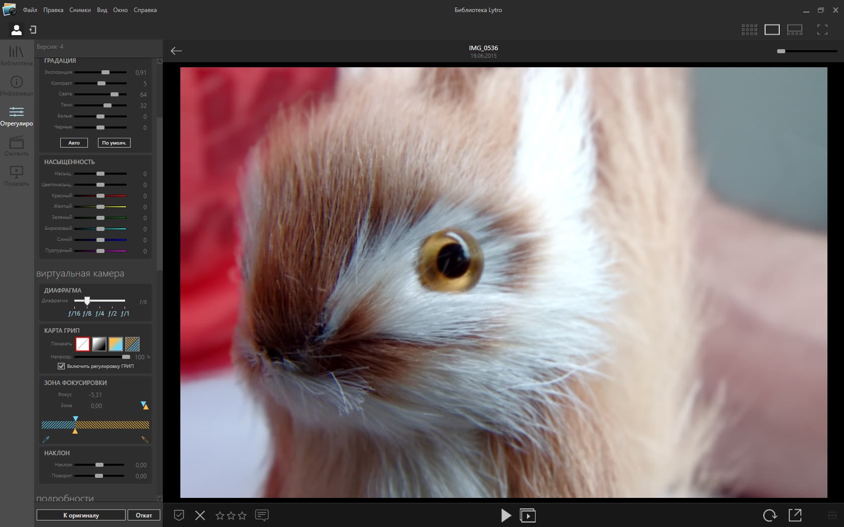 - Приоритета диафрагмы у Lytro Illum нет, работа с фокусировкой, глубиной резкости и даже формой и наклоном ГРИП производится в редакторе Lytro Desktop.