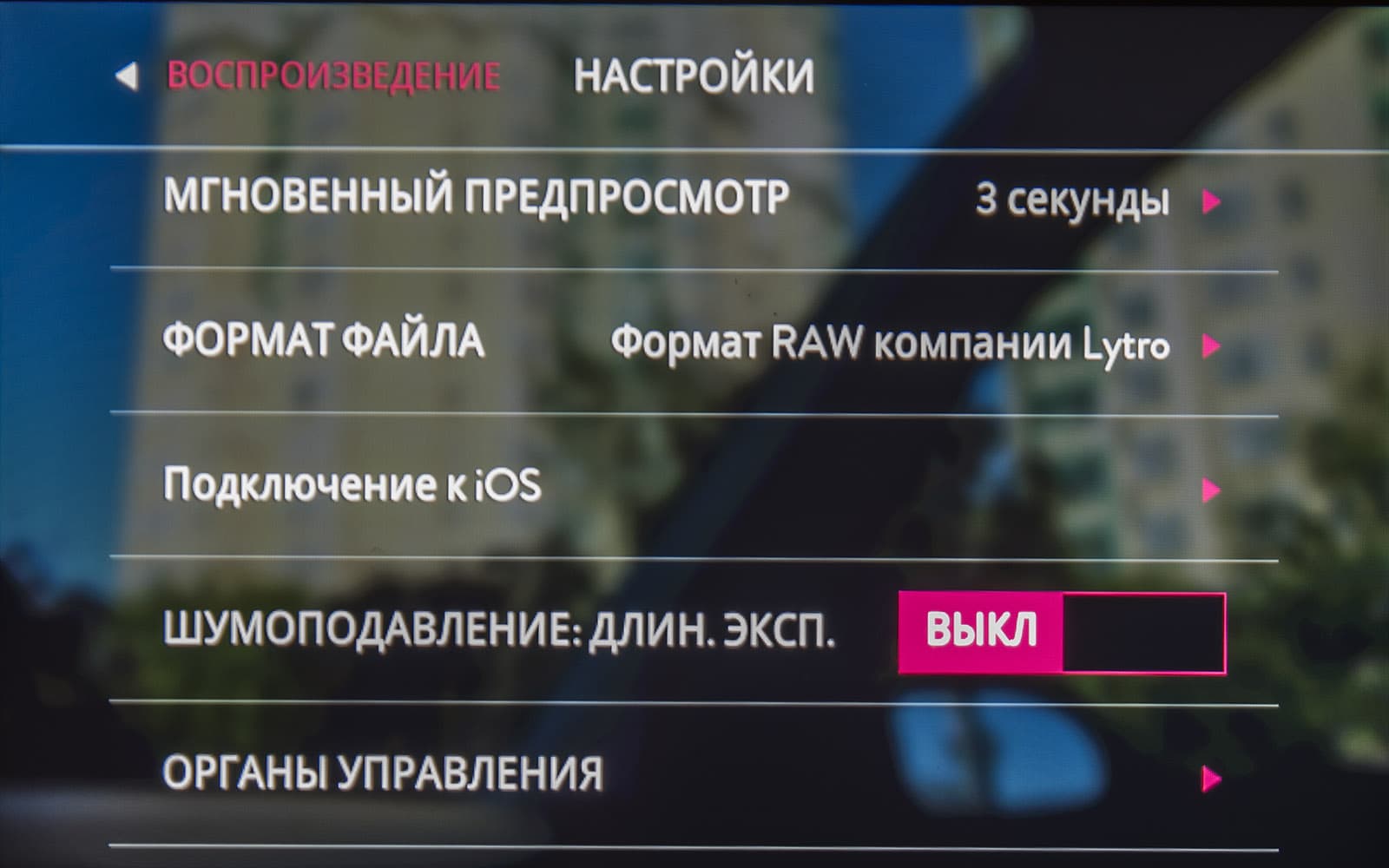 Давайте теперь посмотрим, какие базовые настройки предлагает Lytro Illum. Пояснения к скриншотам появляются как всплывающие подсказки. Хотя можно просмотреть «скрины» в увеличенном виде, и тогда пояснения станут подписями внизу.