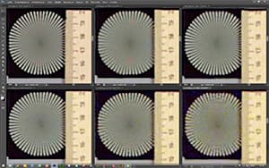 - разрешение во всем диапазоне остается невысоким, порядка 2 Мп (двух миллионов различимых пикселей), и его незначительные колебания, скорее всего, никак не связаны с оптическими характеристиками объектива (а невысокий уровень — порядка 0,5 линии на пиксель — связан с необходимостью быстрой фиксации большого числа кадров);