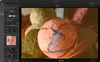 После того, как выполнена операция «Обработать изображение», можно попасть в раздел «Отрегулировать». Правда, попасть в этот раздел можно и без обработки, но тогда опции регулировки изображения будут недоступны. Часть предлагаемых регуляторов в этом разделе похожа на то, что мы привыкли видеть в обычном RAW-проявщике — это регулировка ББ, коррекция экспозиции, светов, теней, насыщенность цветов, теней и т. д. Но следующая группа регуляторов связана с коррекцией объемного изображения (см. правый фрагмент иллюстрации):