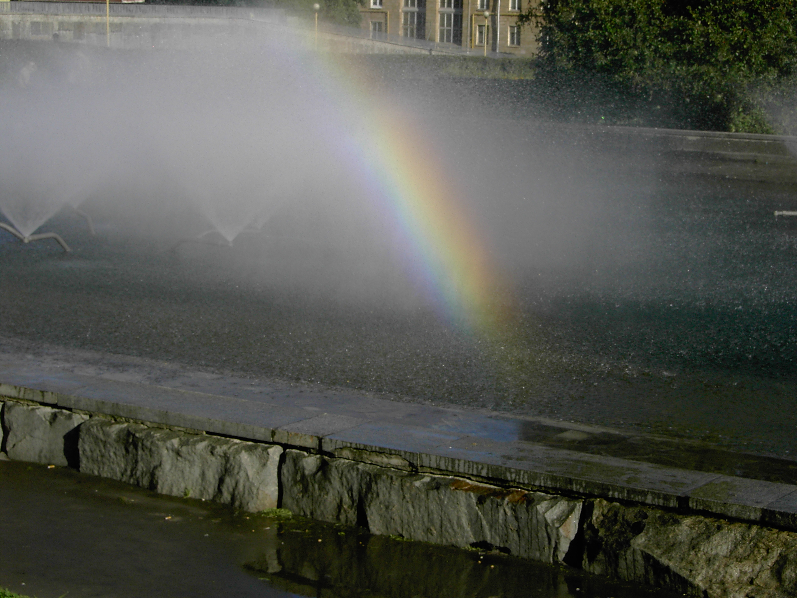 Рассматривая тестовые фотографии, появилась возможность еще раз обратить внимание на условность понятия цветопередачи. Солнечная радуга выглядит правдоподобно, спектр солнечного излучения сплошной и несмотря на то, что камера регистрирует сигнал за тремя зональными фильтрами, он таковым и остается. На следующей фотографии спектр, полученный от двух ламп с помощью дифракционного фильтра фирмы COKIN P040. Баланс белого на камере установлен для солнечного света. Верхний источник — света лампа накаливания с цветовой температурой примерно 2800 K, а нижний — люминесцентная лампа с условной цветовой температурой 2800 K.