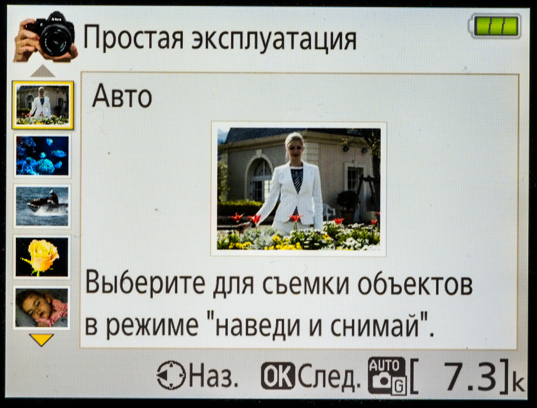 Для новичков такой режим должен быть очень полезен, а более опытные фотолюбители могут просто не обращать на него внимания, тем более что для активации он требует перевода селектора режимов съемки в отдельное положение — Guide.