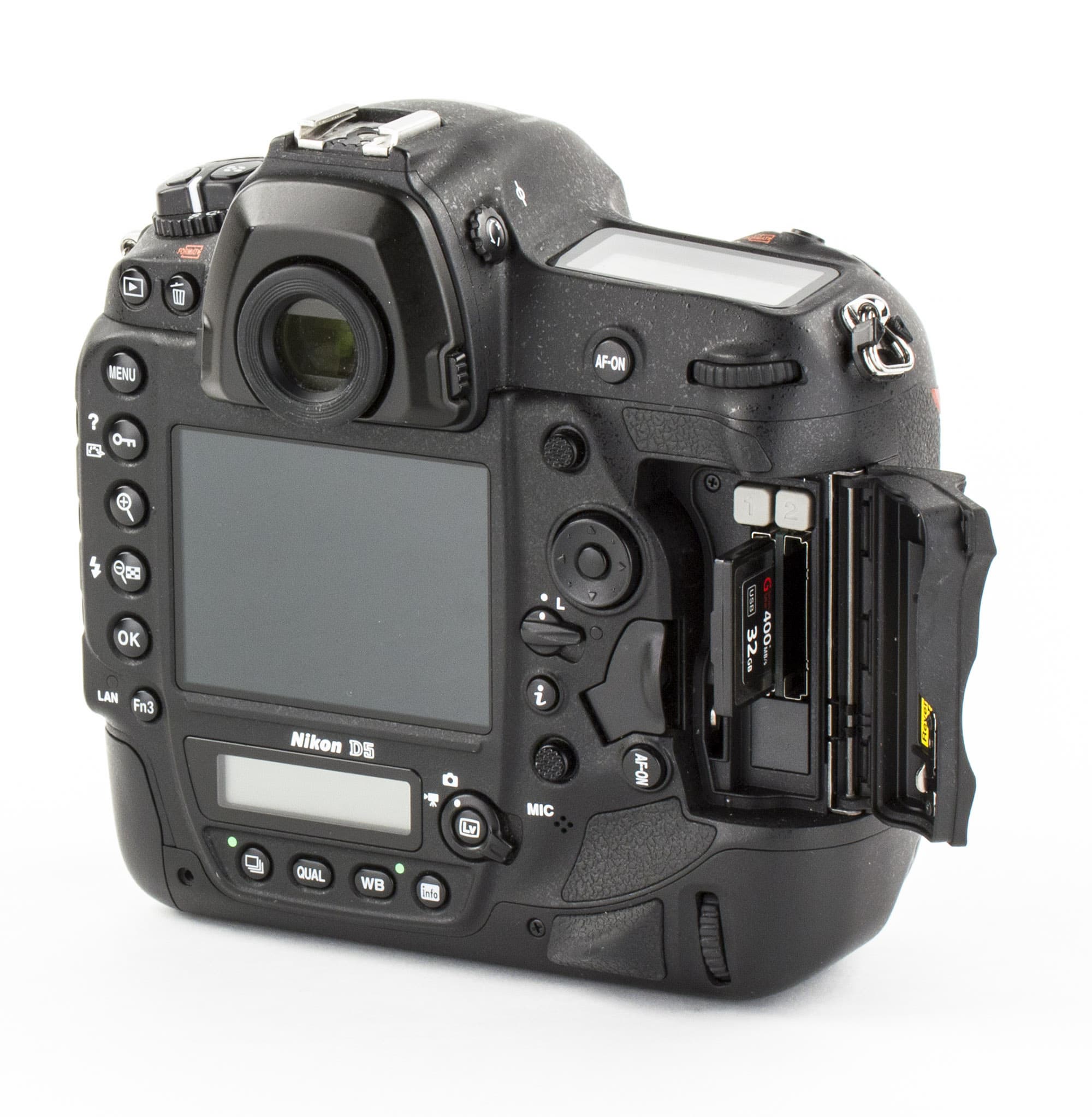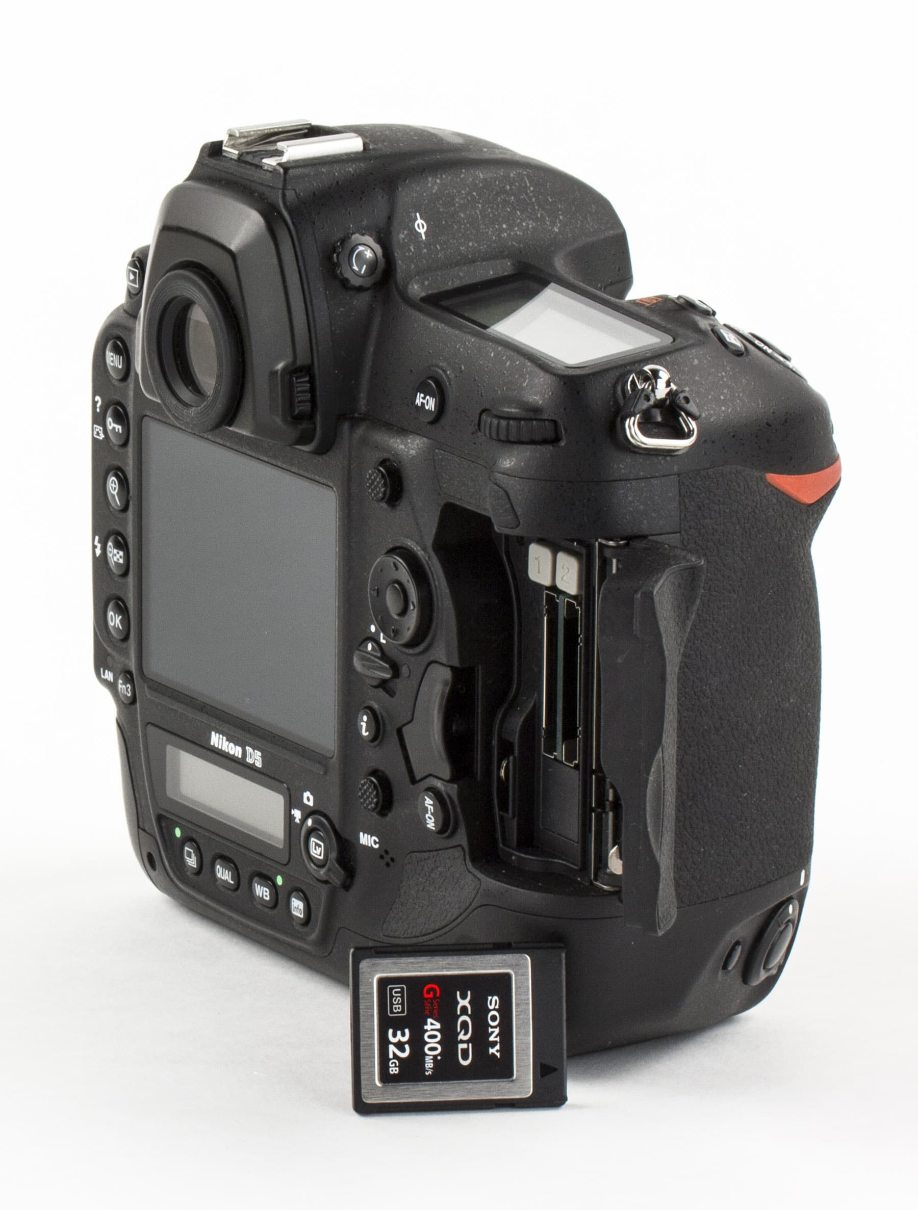 - Nikon частично перешел на скоростные карты XQD с пропускной способностью интерфейса до 2,5 Гбит/с. Сейчас выпускаются две модификации Nikon D5 — с двумя слотами XQD и с двумя слотами CF.