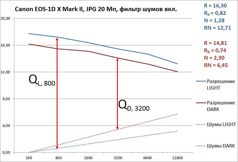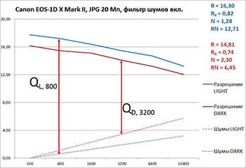 А при включенном шумодаве мы видим, что шумы флагманов Canon и Nikon в светлой сцене сравнялись. При этом: