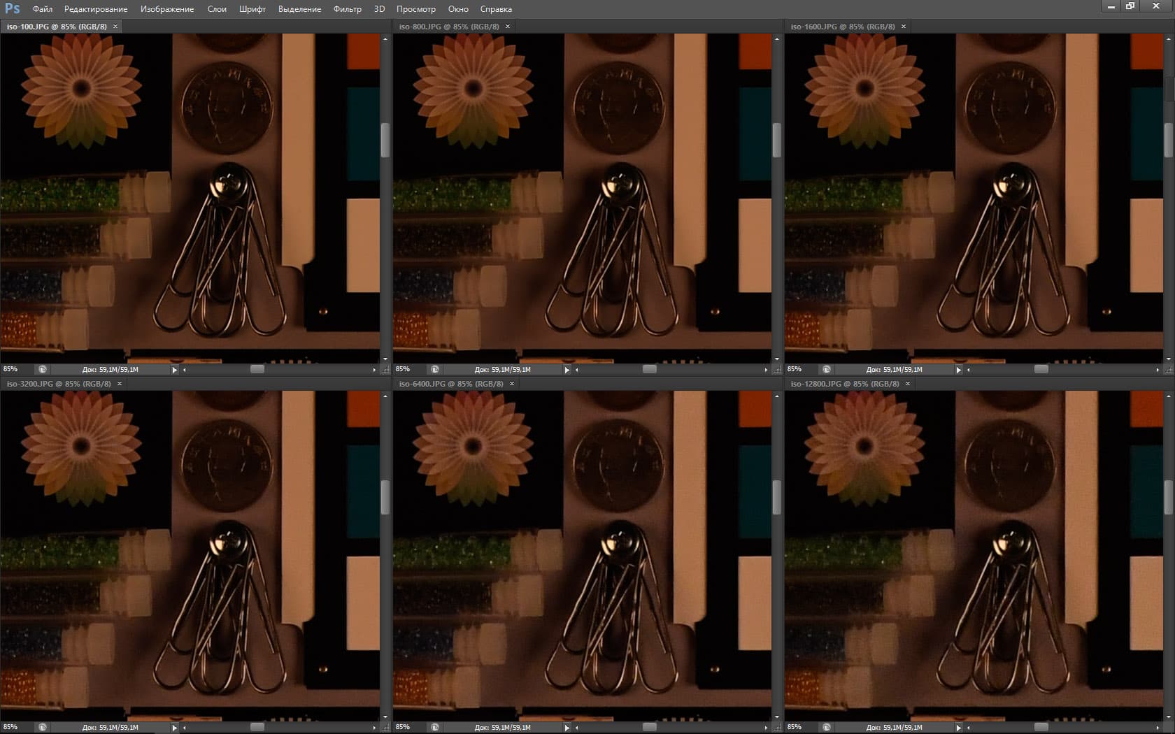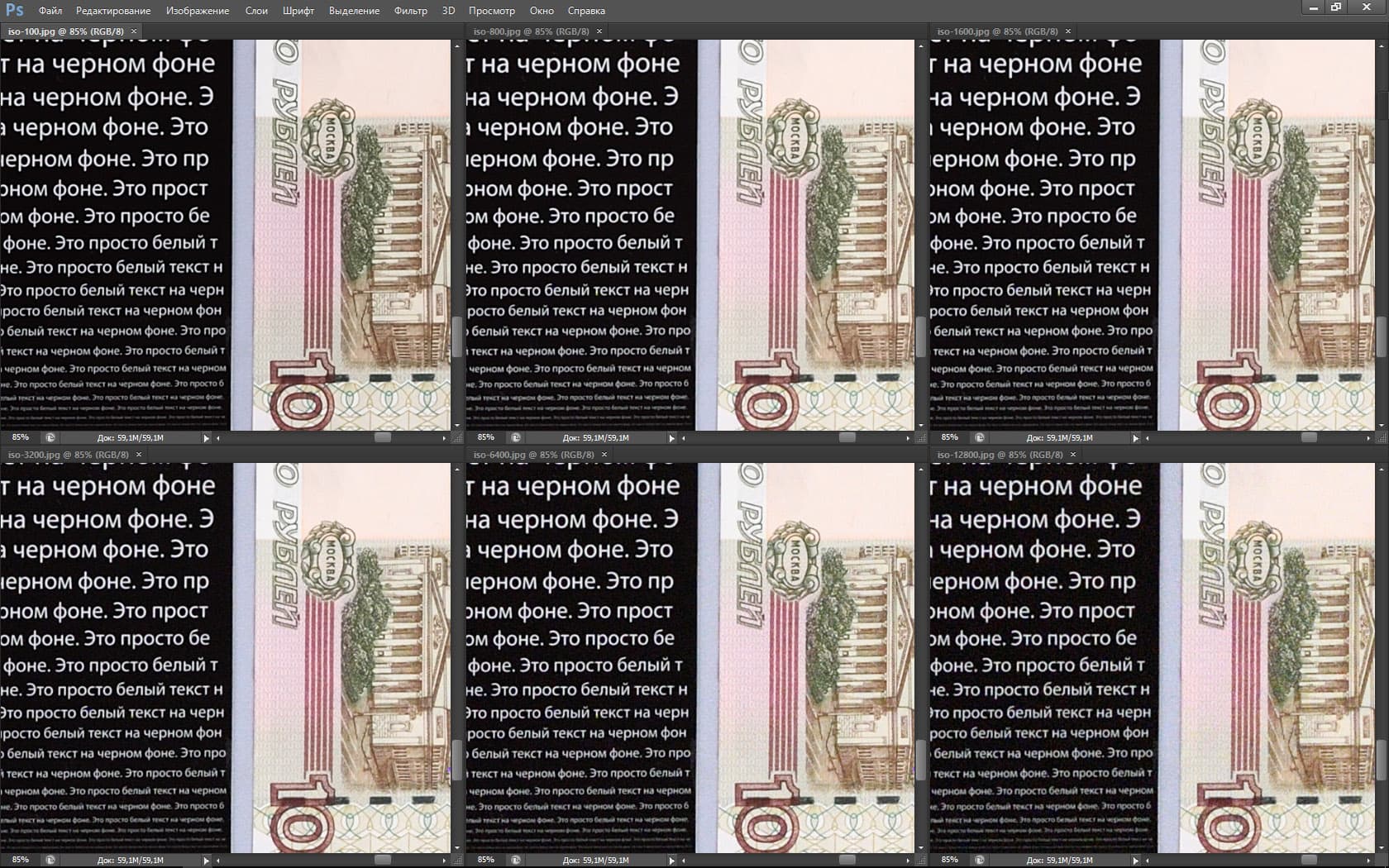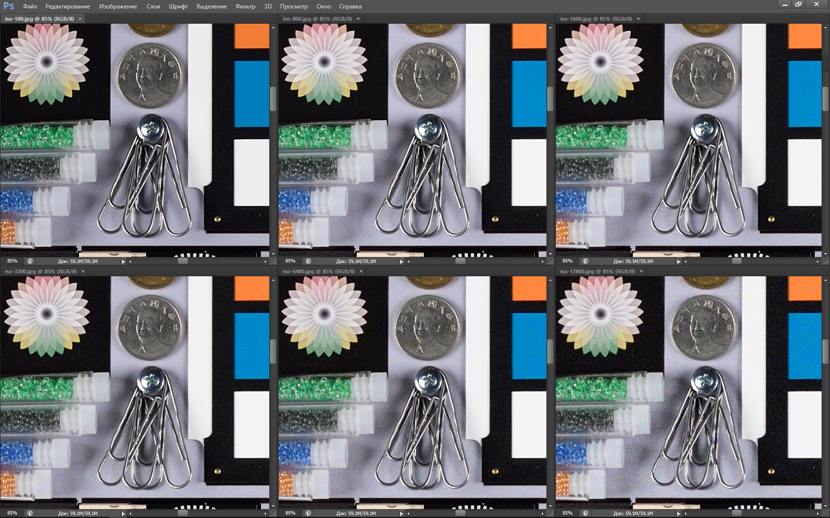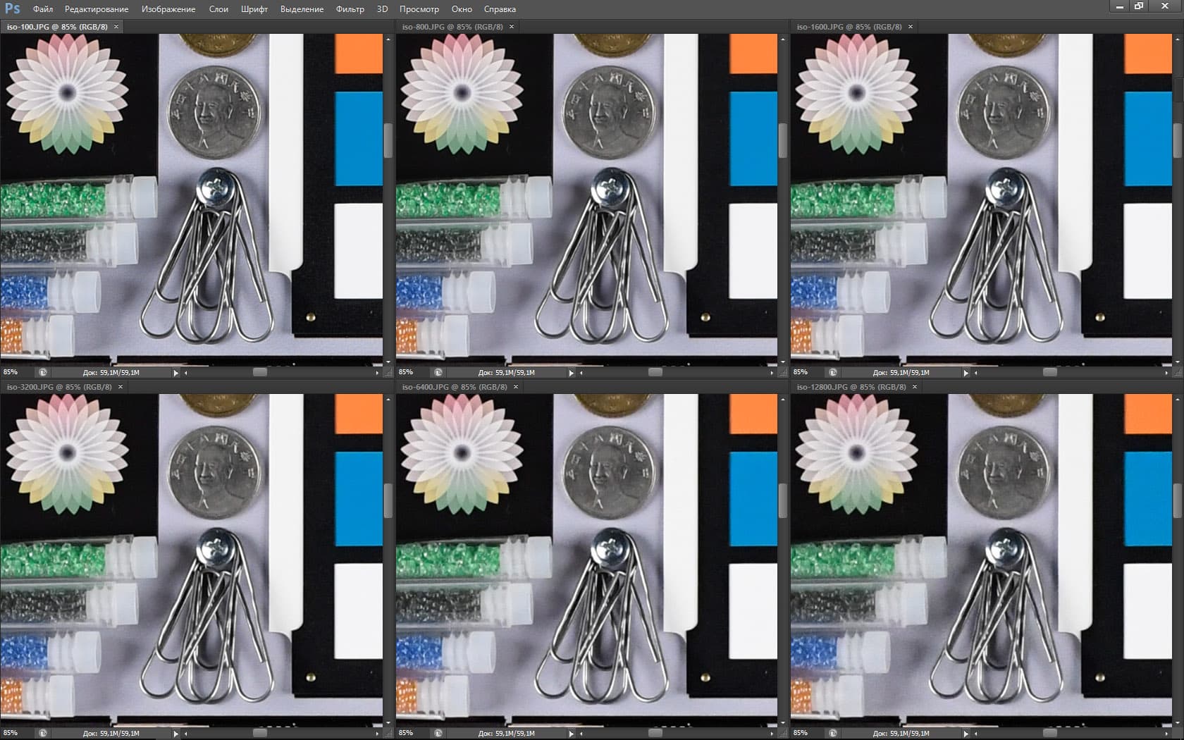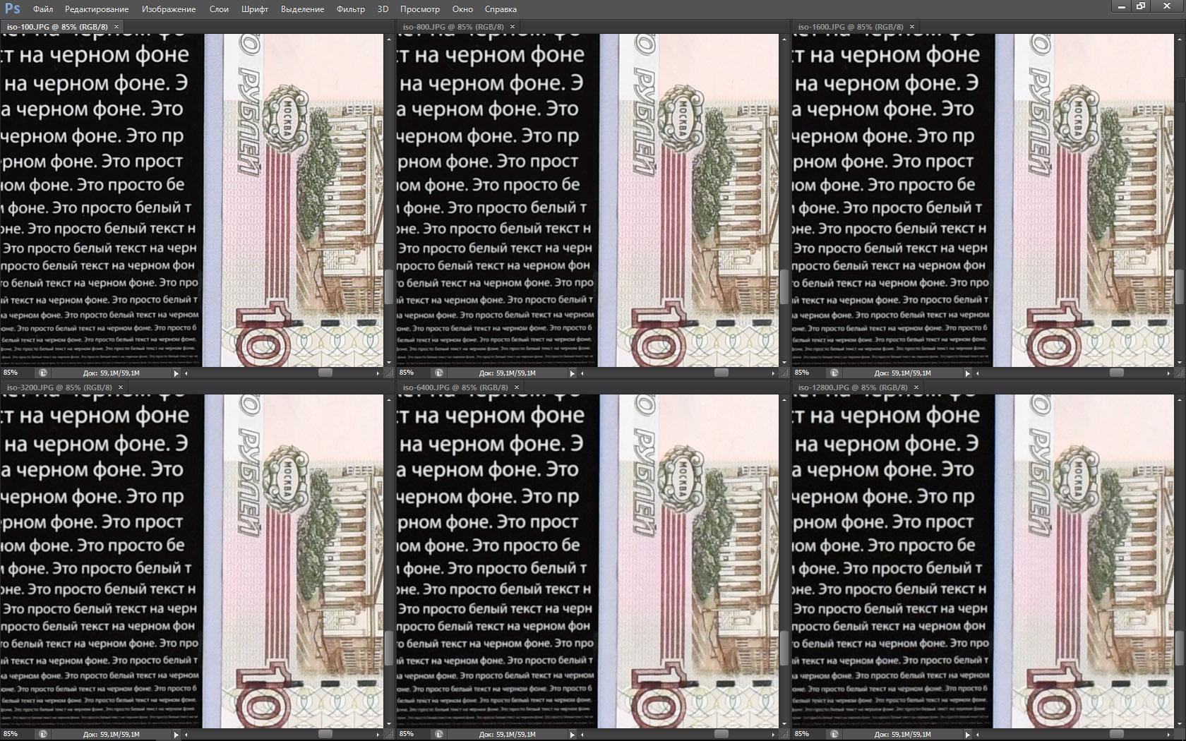 Перед тем как сделать выводы из этого теста мы дадим еще одну таблицу — в ней представлены разные фрагменты нашего стенда, снятые Nikon D5 в разных условиях: