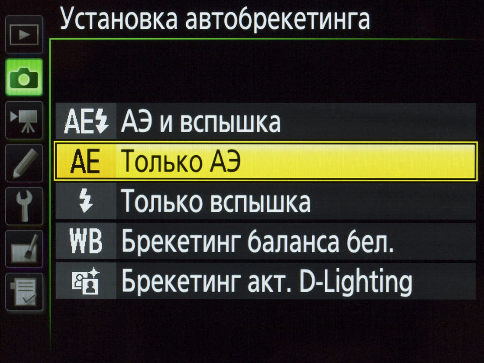 | Брекетинг | По экспозиции, по балансу белого, по экспозиции вспышки, по Active D-Lighting. |