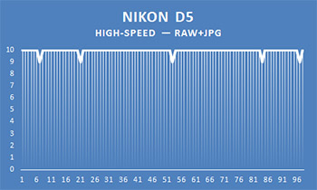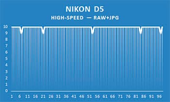 Nikon D5 позволяет снять в одной серии до 200 кадров. Но по нашей методике достаточно 100 кадров в серии, и мы не стали делать для Nikon D5 исключение, хотя возможность «отщелкать» 200 кадров без замедления съемки — замечательна.