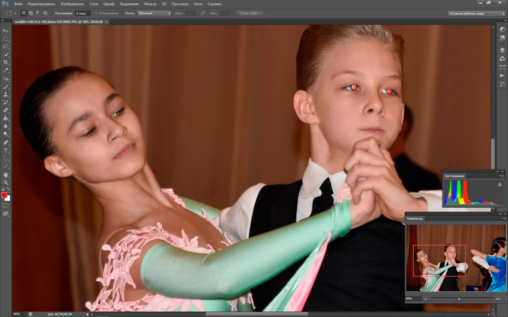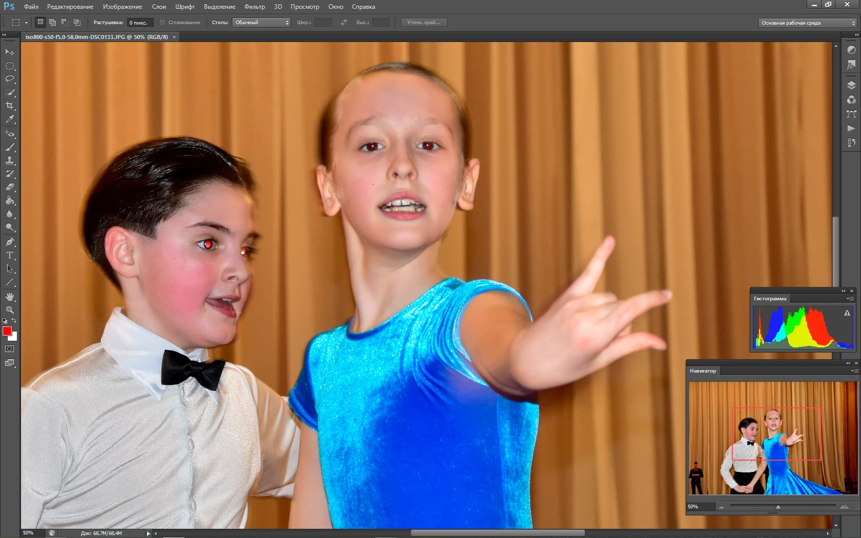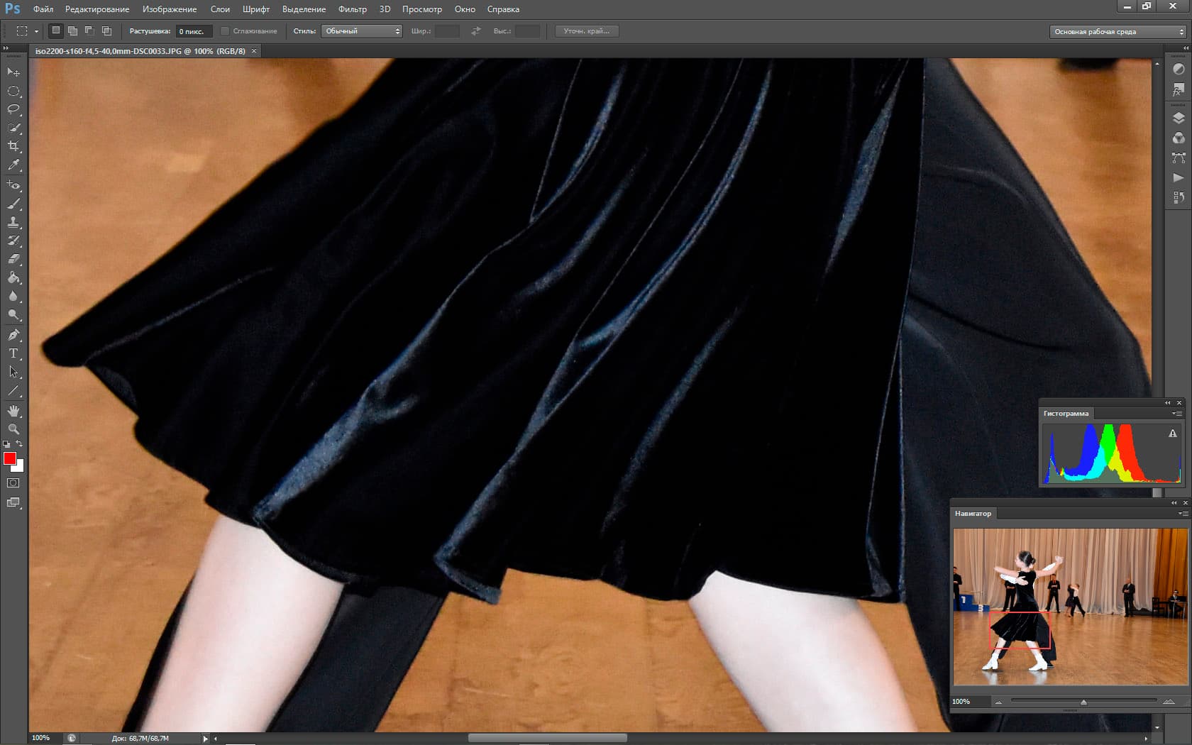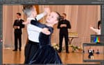 Периодически перед камерой мелькают посторонние объекты (первый раз в жизни был благодарен людям, которые «прут» перед объективом). Эти объекты на долю секунды сбивают фокус и экспозицию, но Nikon D5500 очень быстро восстанавливает картинку. Видно, как автофокус мечется в поисках главного объекта, как он быстро перестраивается и старается вести именно главный объект. Но задачка для автоматики поставлена нерешаемая, если вы хотите «вести» какую-то одну пару на соревнованиях по бальным танцам, вас спасет только ручной фокус.