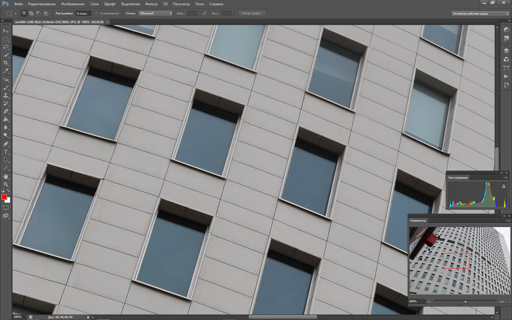 - Разрешение и в центре кадра и на краю продолжает держаться на высоком и очень высоком уровне. На самой широкой даже на краю кадра находится на уровне 0,65 линии на пиксель. И только на диафрагмах уже f/22 падает ниже 0,5 линии. Но это неизбежное влияние дифракции, неизбежное «замыливание слишком узкой дырки».