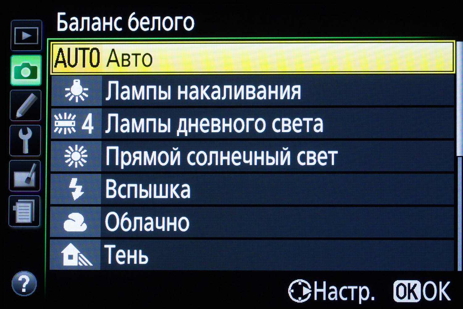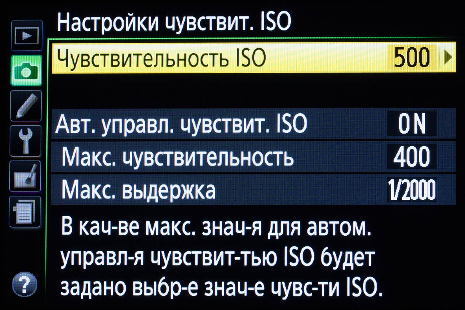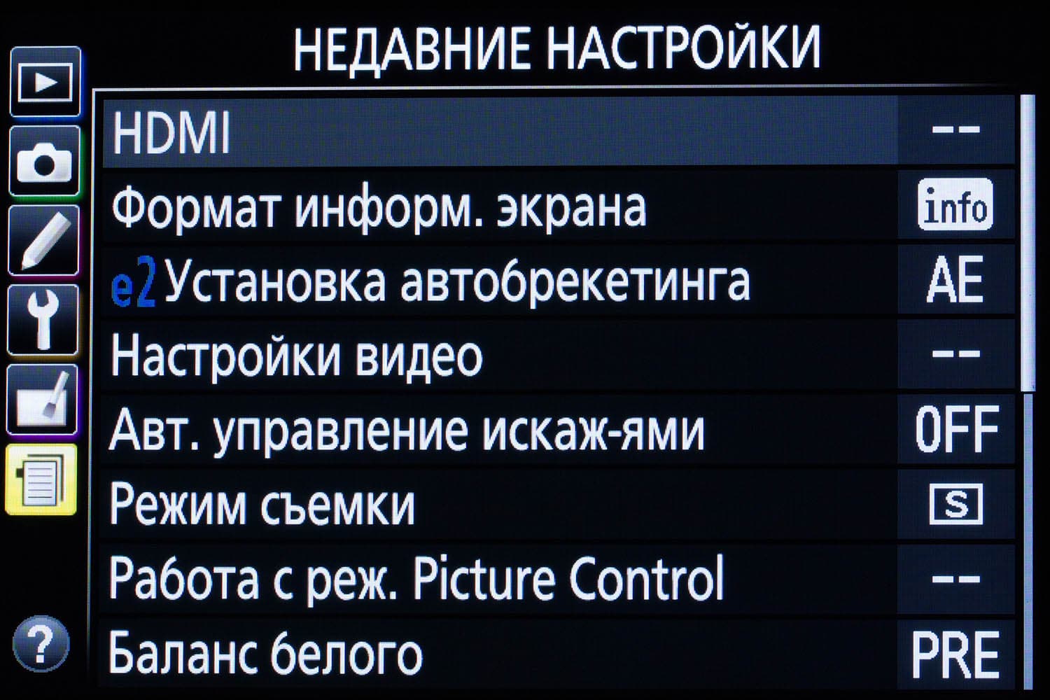 При всем желании хоть к чему-нибудь придраться, это очень сложно сделать. Никоновский дизайн остался безупречным, новые элементы прекрасно вписались в классику. Работать с камерой очень удобно. Она прекрасно лежит и в крупной, и в детской руке. Проверено. Давайте посмотрим, появились ли какие-нибудь новые элементы в меню камеры?