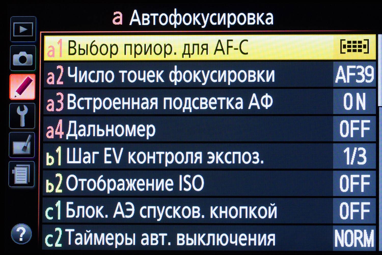 | Автофокус | 19 точек (19 крестовых) | 19 точек (19 крестовых) | 39 точек (9 крестовых) | 51 точка (15 крестовых) | 11 точек (9 крестовых) | 79 точек |