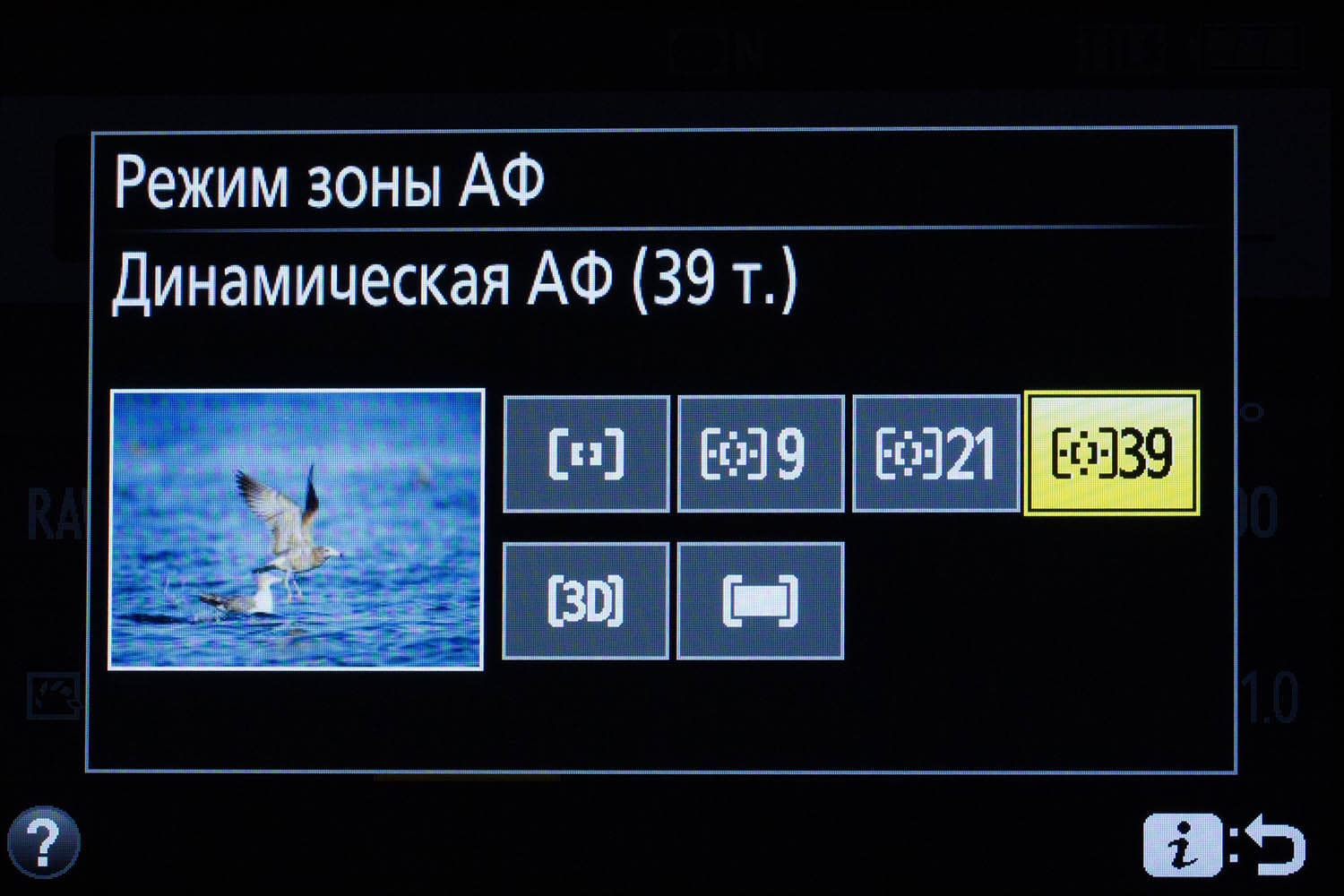 | Автофокус | Фазовый АФ-датчик Nikon Multi-CAM 4800DX, 39 точек фокусировки (включая 9 датчиков перекрестного типа). 1-, 9-, 21- или 39-точечная динамическая АФ, 3D-слежение, автоматический выбор зоны АФ. |