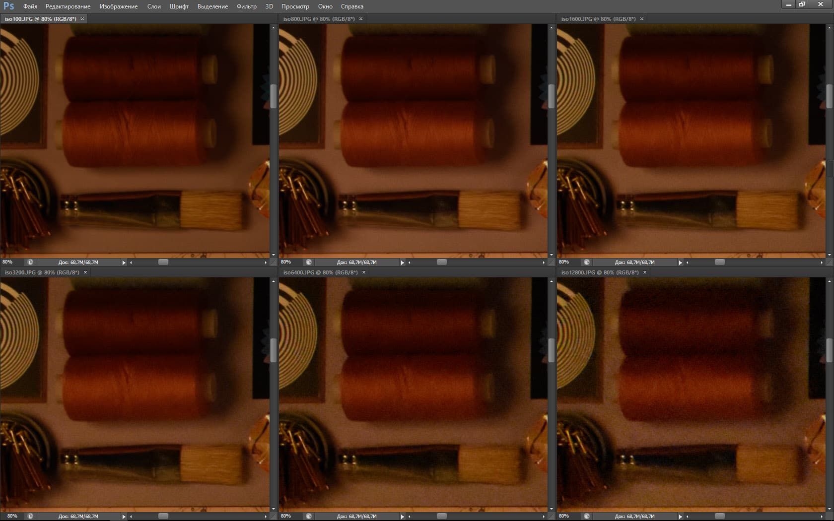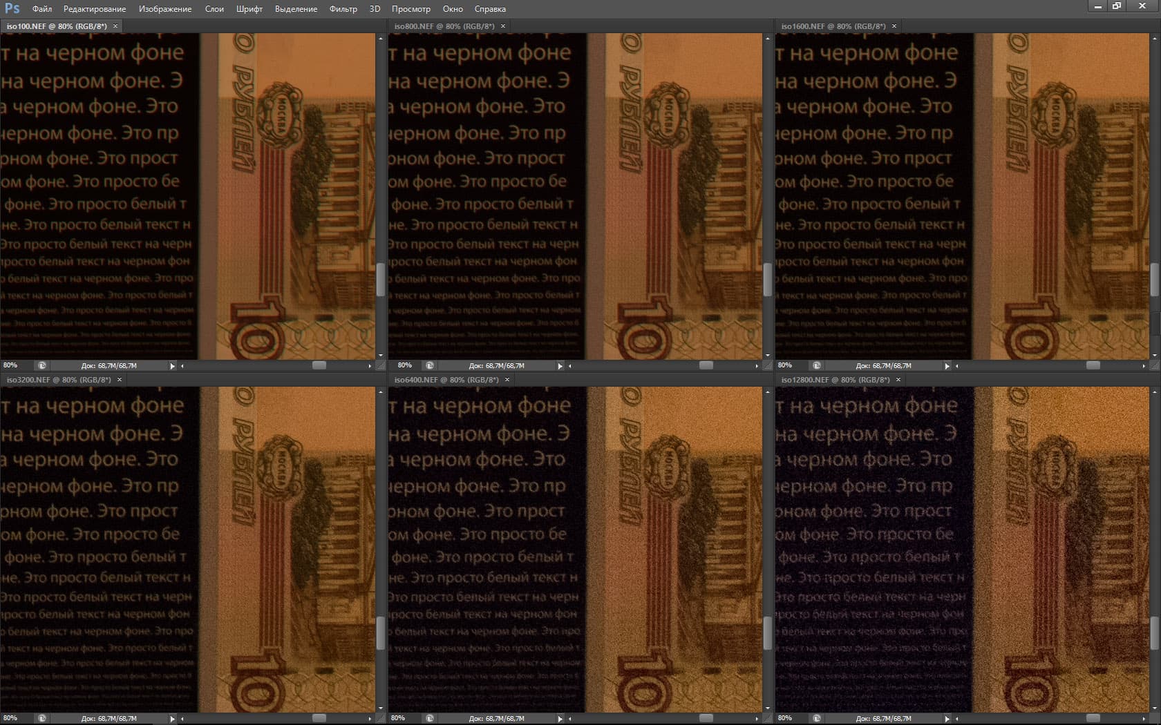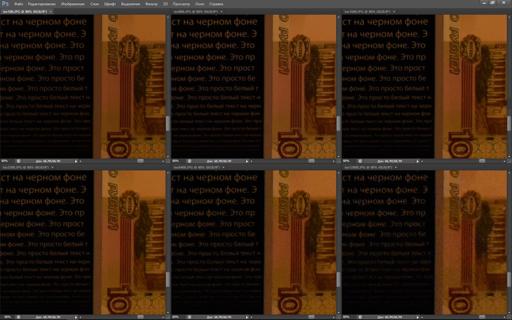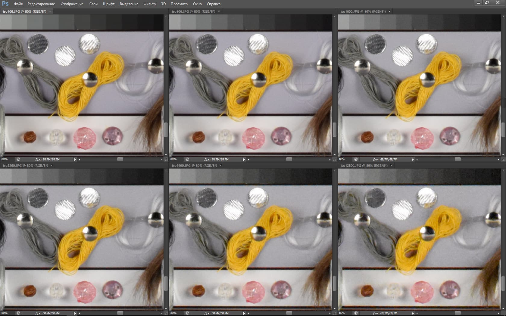 Эти различия видны даже на ISO 800, а по мере увеличения чувствительности становятся все более заметными. Мы явно видим, что Nikon D7200 «шумит» меньше. То есть, как нам показали кадры RAW, «шумит» она так же, но борется с шумами более успешно. Правда, уже на чувствительности ISO 3200 мы наблюдаем желтую полоску вдоль горизонтальной черной полосы. На снимке ISO 6400 полоска становится еще более отчетливой, а на ISO 12 800 в кадре появляются желтые пятна. У D7100 желтых пятен нет, но уровень шумов — более высокий.