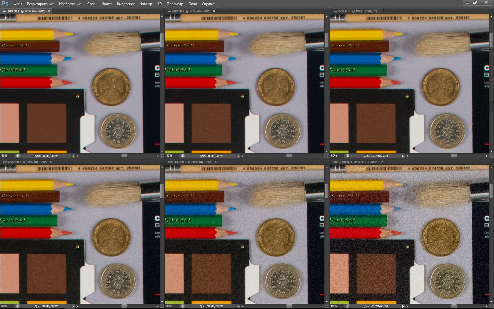 Завершает наш тест таблица, где даны фрагменты тестового стенда снятого в разных условиях. Мы не стали растягивать статью и дали только фрагменты от D7200. На снимках RAW, можете быть уверены, D7100 дала бы такое же изображения, а на снимках JPG — чуть хуже.