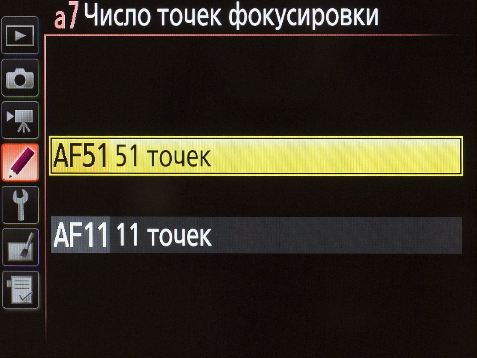 | Автофокус | 19 точек (19 крестовых) | 19 точек (19 крестовых) | 39 точек (9 крестовых) | 51 точка (15 крестовых) | 27 точек (25 крестовых) | 79 точек |