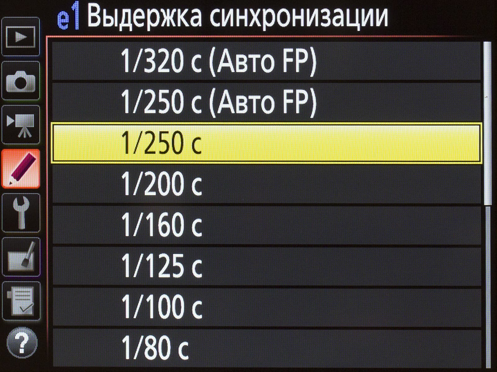 - Возможна синхронизация с затвором при выдержке 1/320 с или длиннее (расстояние съемки со вспышкой уменьшается при выдержках от 1/320 до 1/250 с).