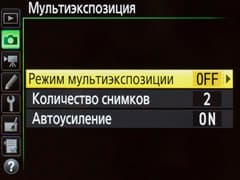 | Брекетинг | По экспозиция, по вспышке, по балансу белого, по функции «Активный D-Lighting» (ADL) |