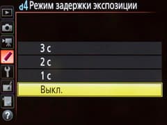 | Автоспуск | 2, 5, 10, 20 секунд; от 1 до 9 экспозиций с интервалами 0,5, 1, 2 или 3 секунды |