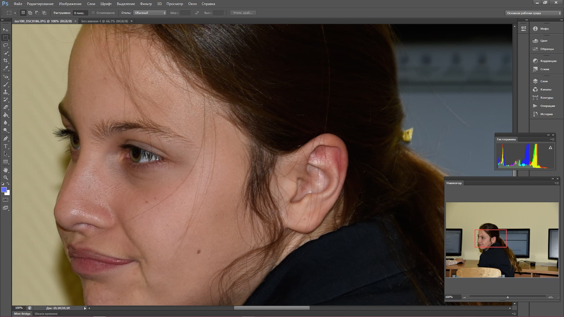 | RAW выключенный фильтр шумов | JPG фильтр шумов «нормальный» | |