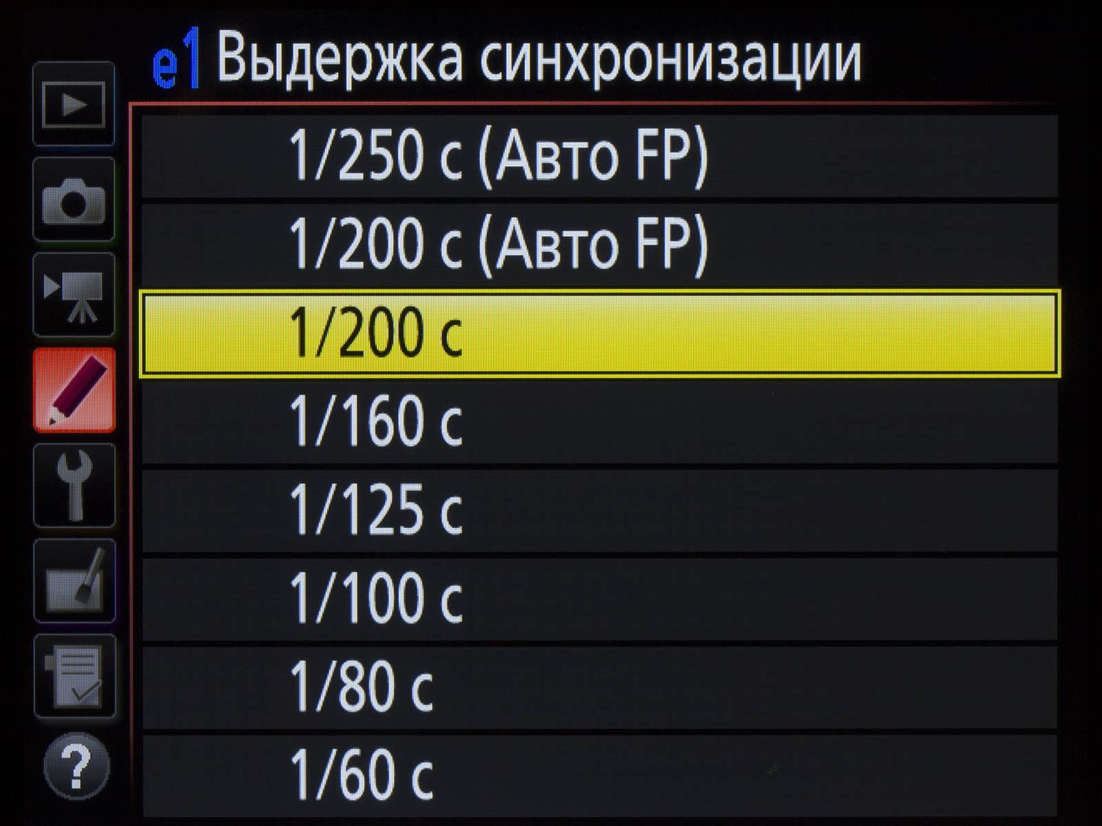 | Скорость затвора | Скорость затвора 30 — 1/4000 с, Х-синхронизация 1/200 с (1/250 с в режиме автоматической высокоскоростной синхронизации FP) |