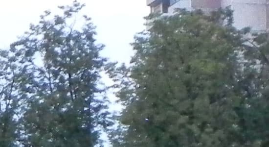 Снимок сделан в режиме HDR для компенсации контрового света. По фрагменту хорошо видно, что при съемке в HDR динамичного сюжета возможно появление артефактов в виде двоения изображения.