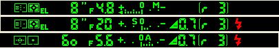 Информация в видоискателе при разных режимах съемки (приведены линейки, отображаемые программой Nikon Capture, которые отличаются от того, что можно увидеть в видоискатель, только цветом). | Информация на ЖК-экране. |