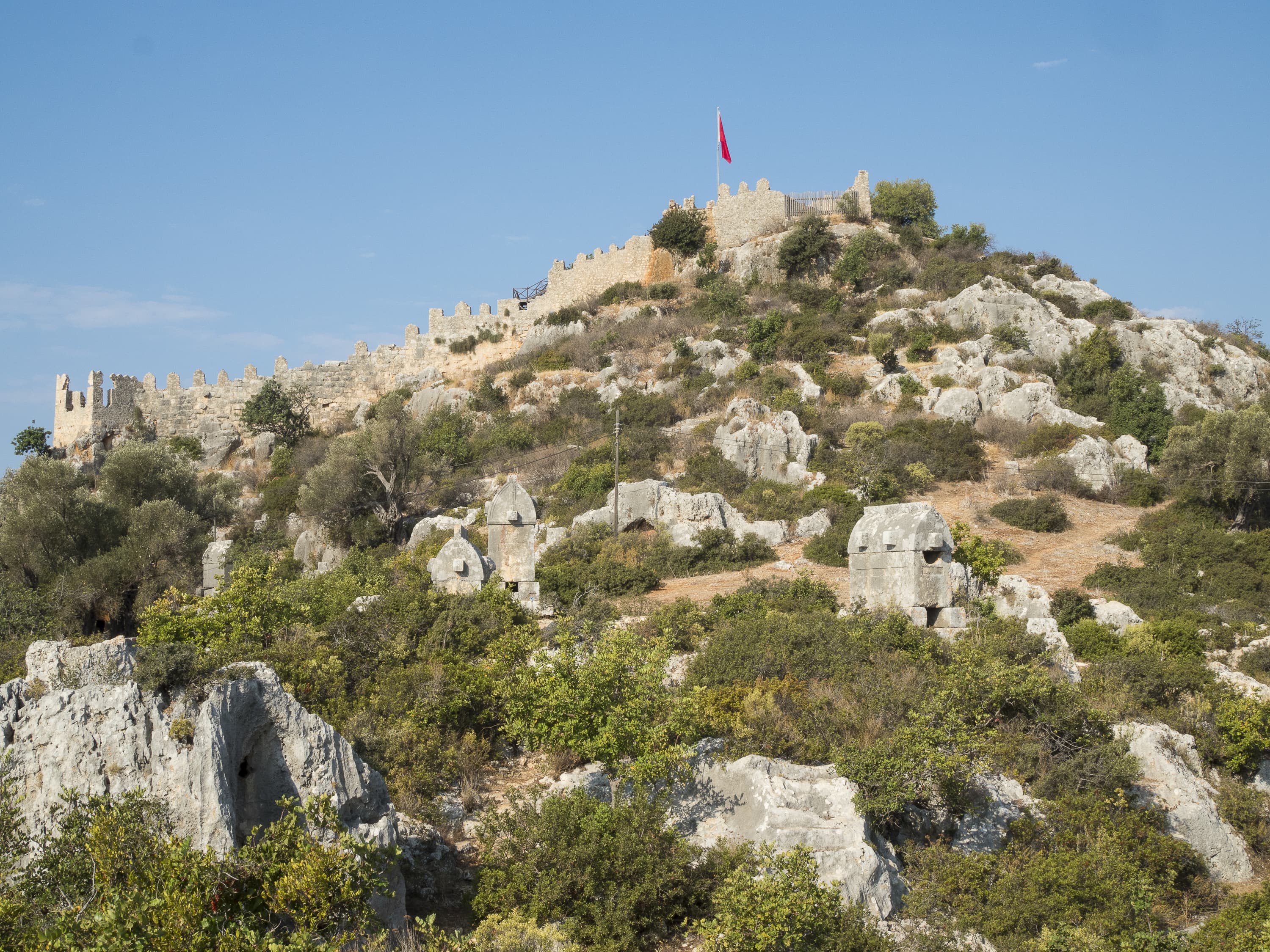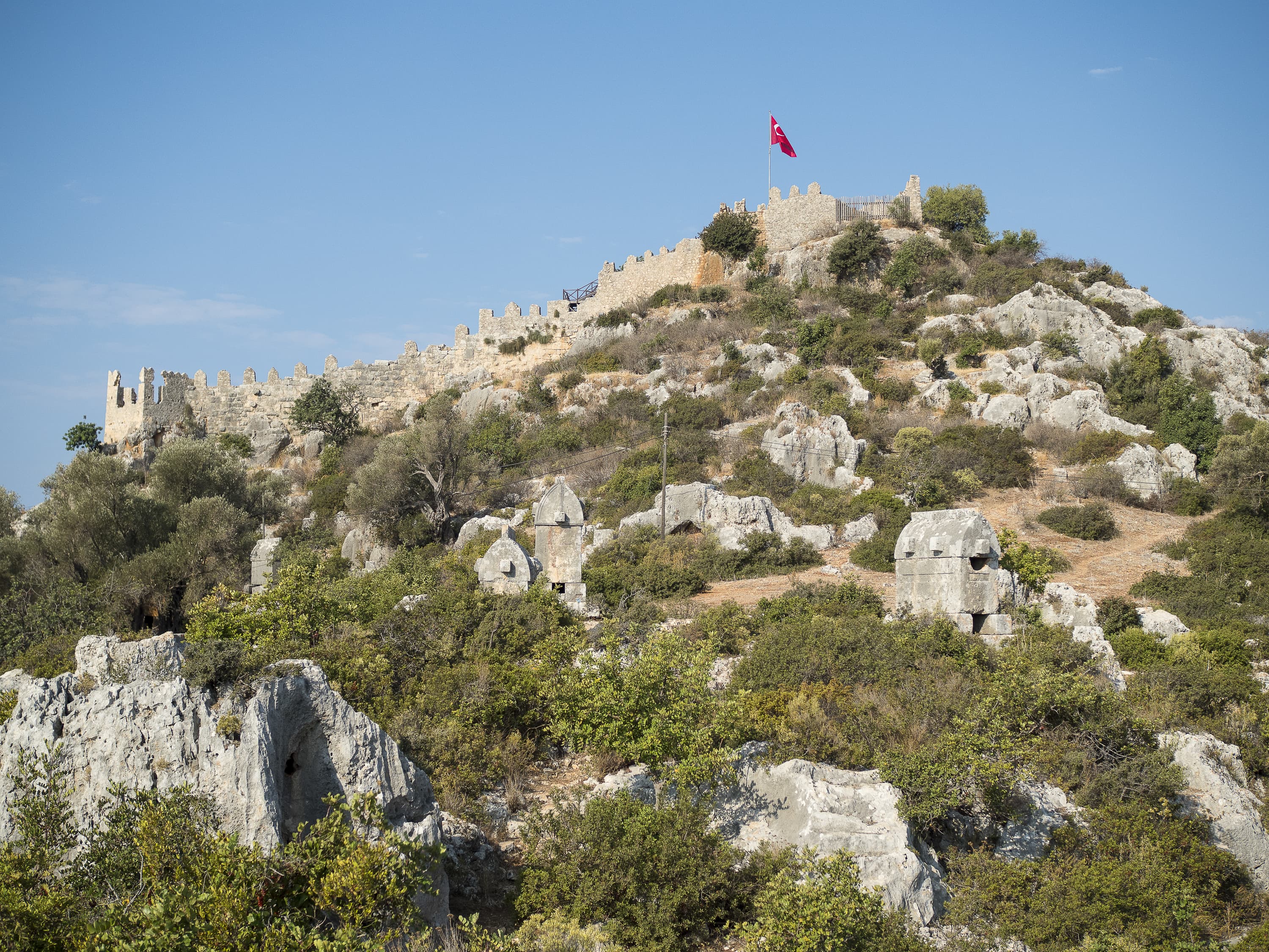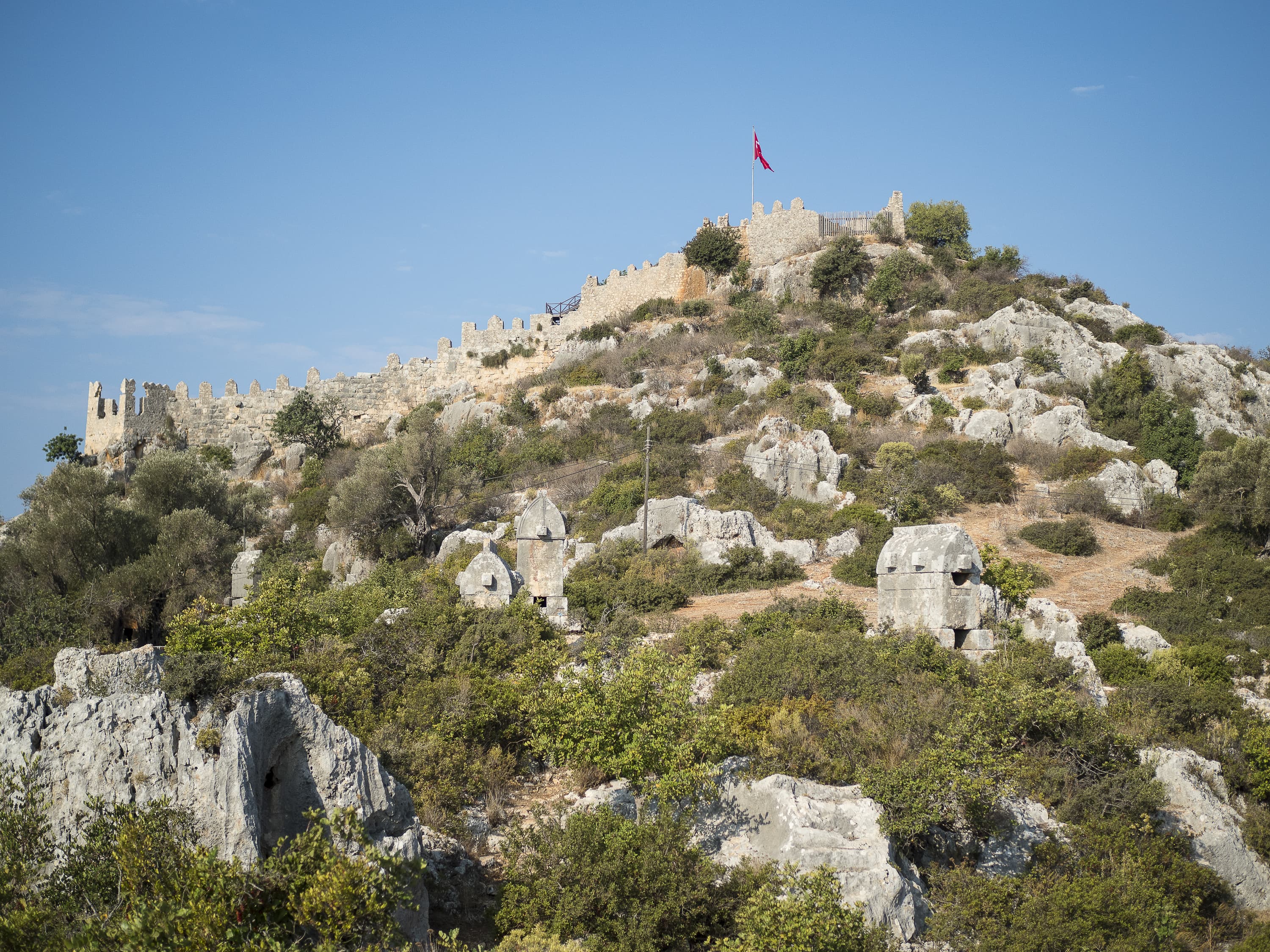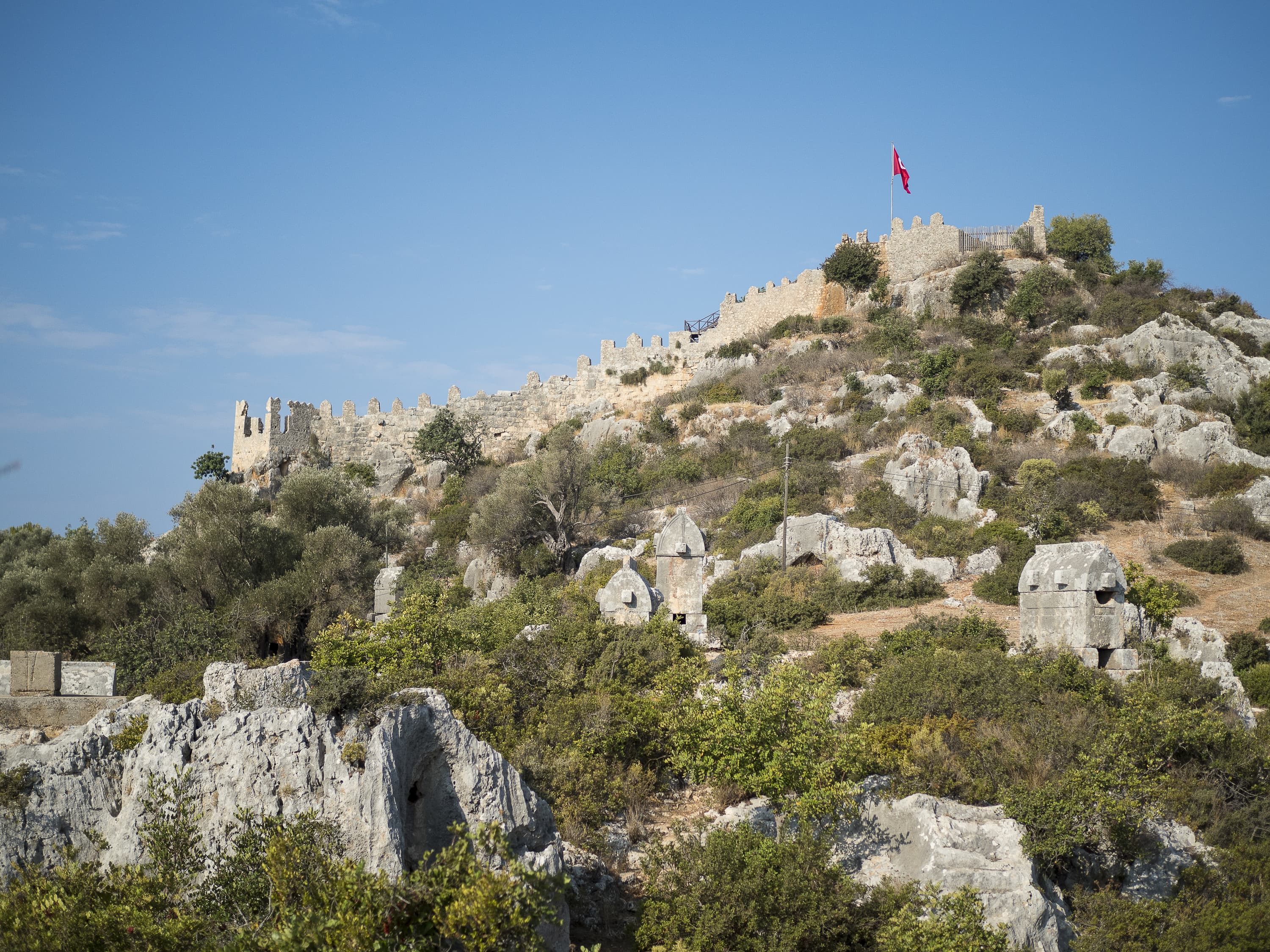 Ниже я поместил серию снимков одной сцены при разных значениях диафрагмы. Это крепость древней Симены в нынешнем турецком селении Калекёй. На обращенном к нам склоне горы стоят каменные ликийские саркофаги, которым около двух тысяч лет (все разграблены еще в древности).