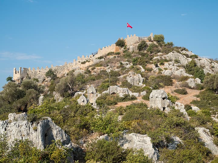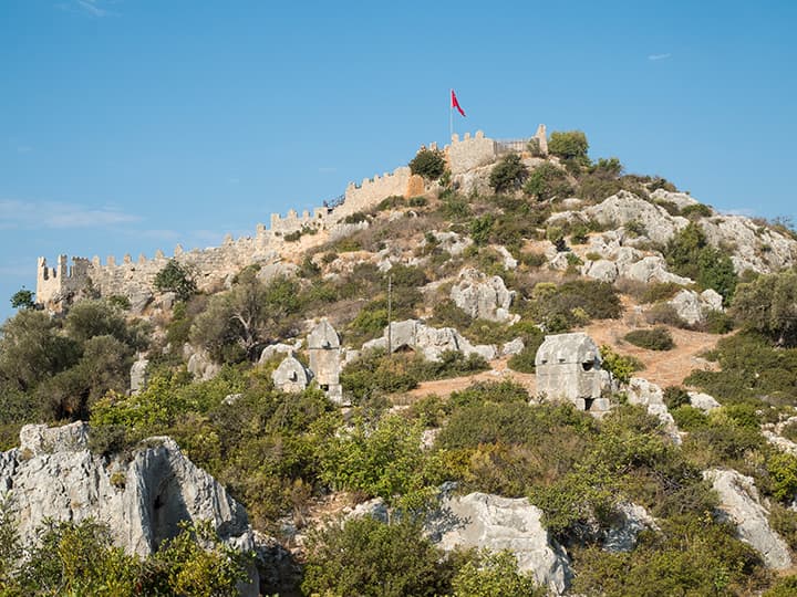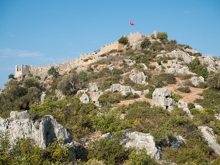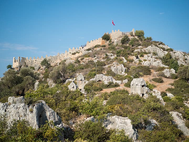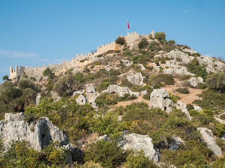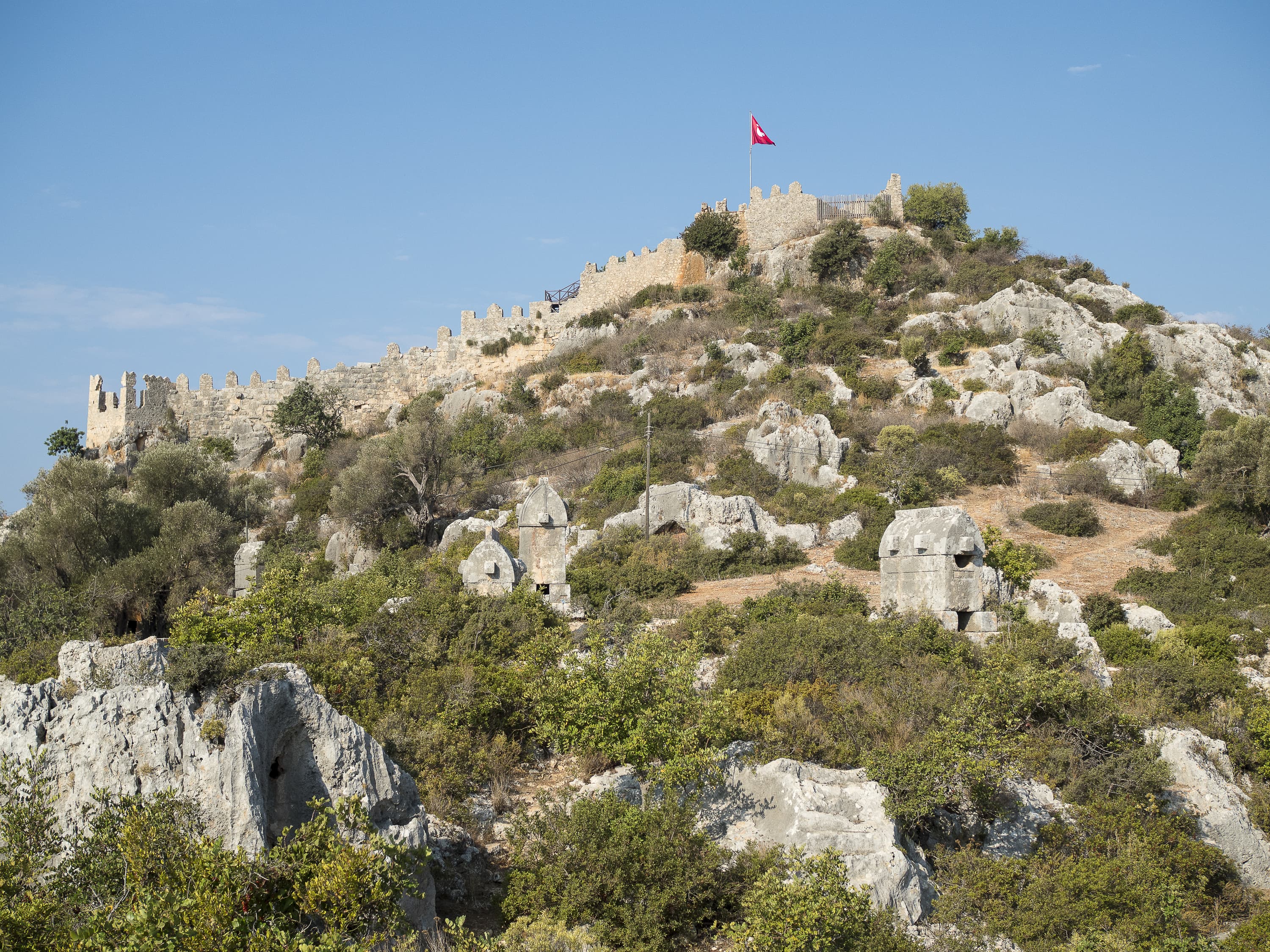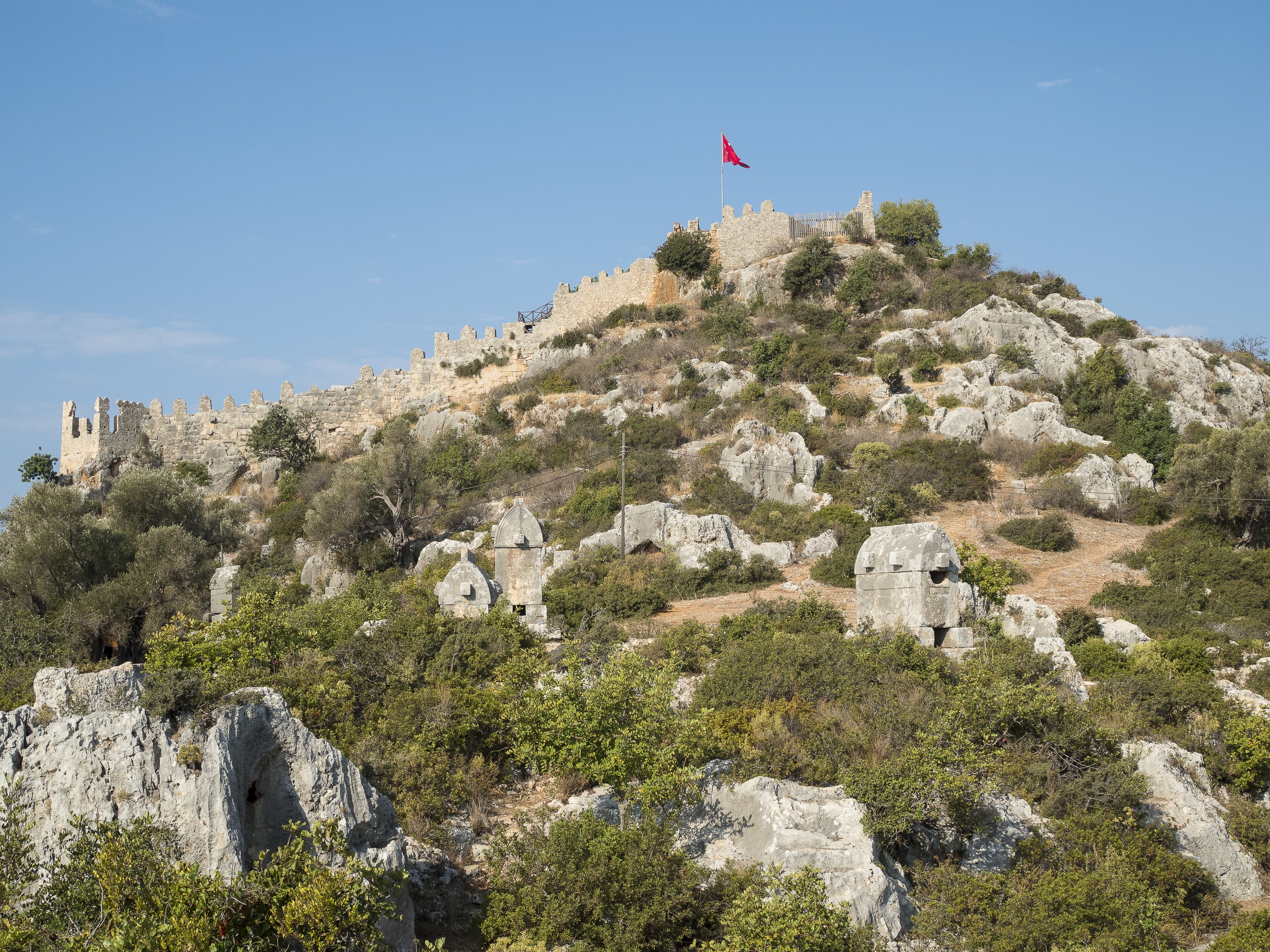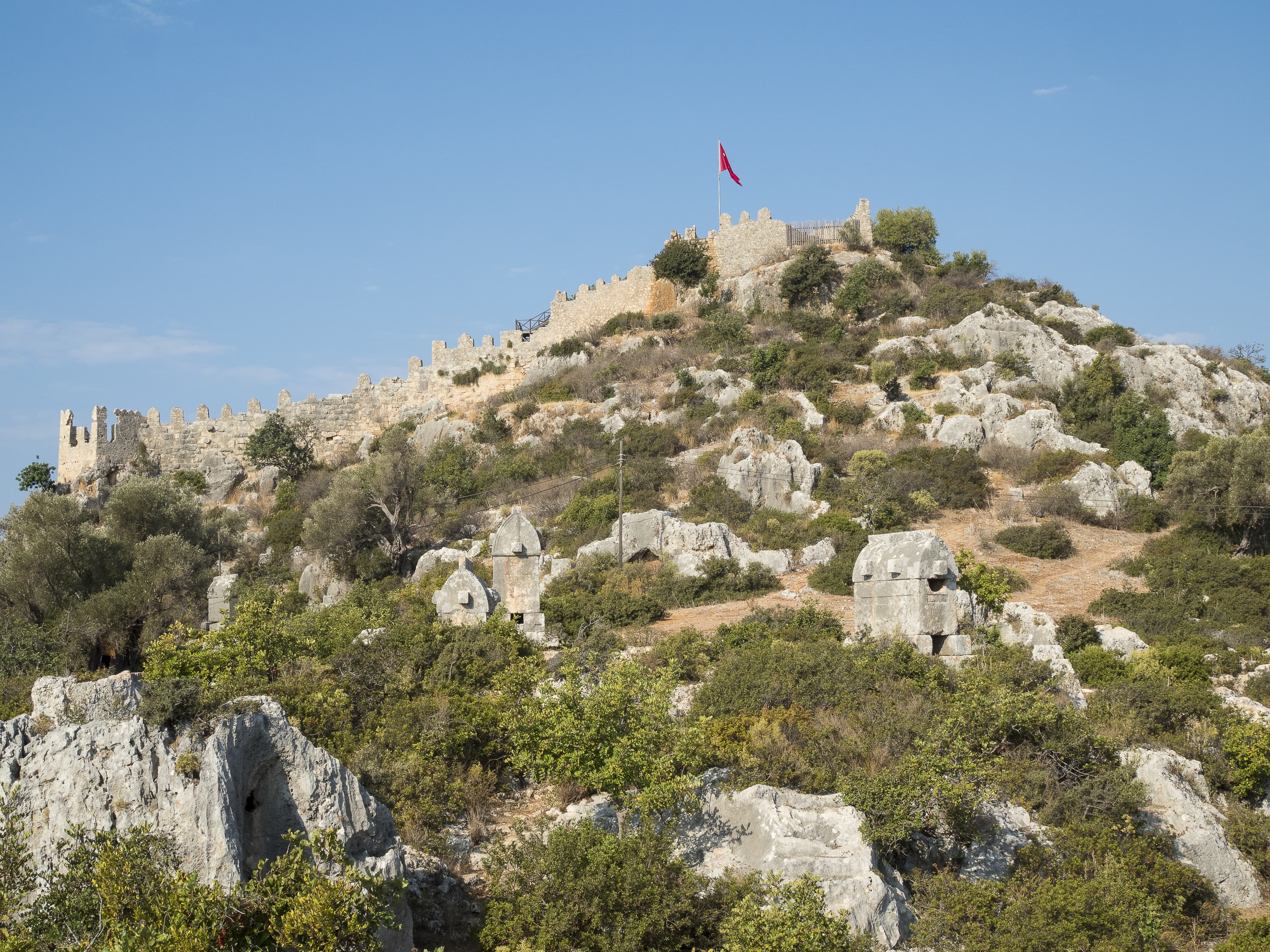 Ниже я поместил серию снимков одной сцены при разных значениях диафрагмы. Это крепость древней Симены в нынешнем турецком селении Калекёй. На обращенном к нам склоне горы стоят каменные ликийские саркофаги, которым около двух тысяч лет (все разграблены еще в древности).