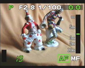 Камера довольно быстрая, она позволяет производить серийную съемку с частотой 3,3 кадра /сек. Выбор режимов этой камеры теперь может удовлетворить самого привередливого профессионала. Есть режим автоматической «экспозиционной вилки», который позволяет сделать 3 или 5 кадров с разной экспозицией. При этом сперва делается кадр с нормальной экспозицией, а затем, если вы продолжаете удерживать кнопку нажатой, то камера делает серию снимков, при этом изменяя экспозицию каждого последующего с шагом в 1/3 EV, 2/3 EV и 1 EV.Можно вручную устанавливать как выдержку, так и диафрагму, а режим фокусировки, который у 2000-й камеры был только обозначен, здесь, можно сказать, достиг своего идеала. При переключении в режим ручной фокусировки на экране камеры появляется шкала, которая отображает расстояние до объекта, а для более четкой наводки на резкость на экране камеры показывается увеличенная центральная часть кадра. Как только вы прекращаете поиск точной фокусировки, камера автоматически возвращает изображение в режим показа полного кадра.
