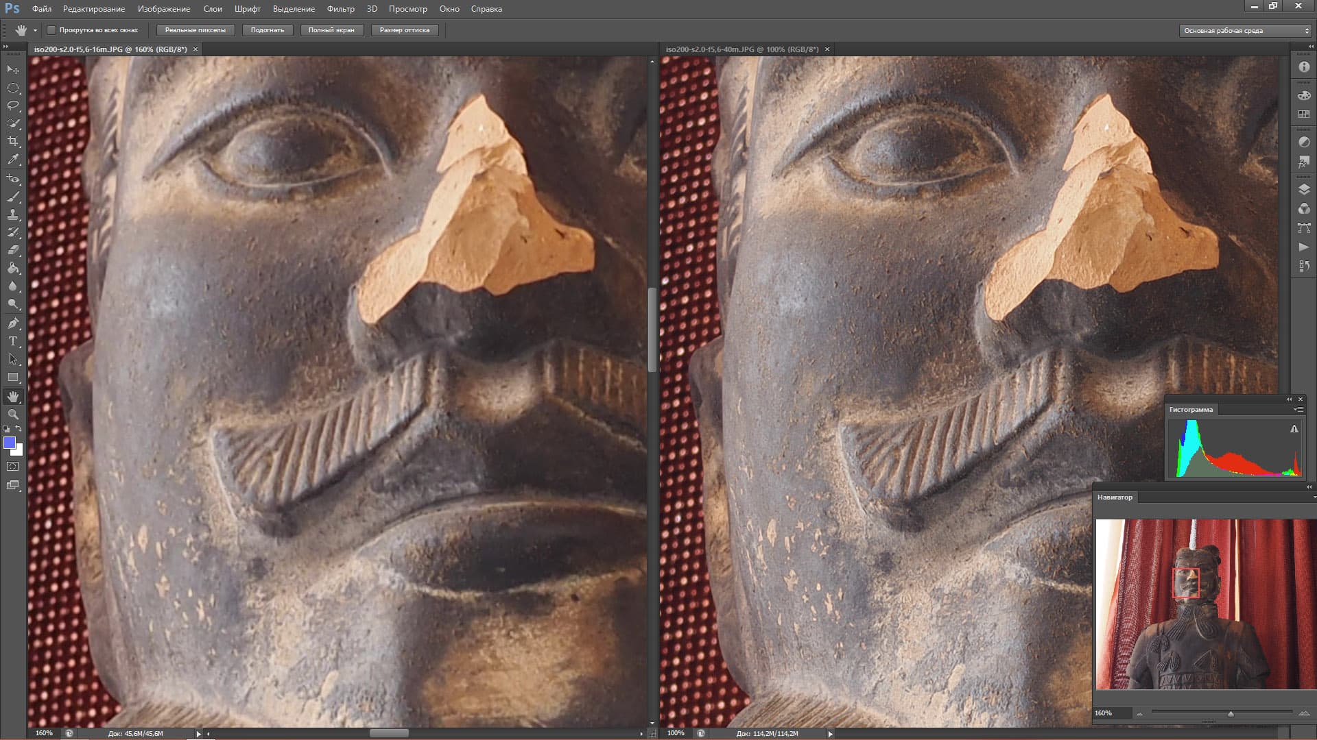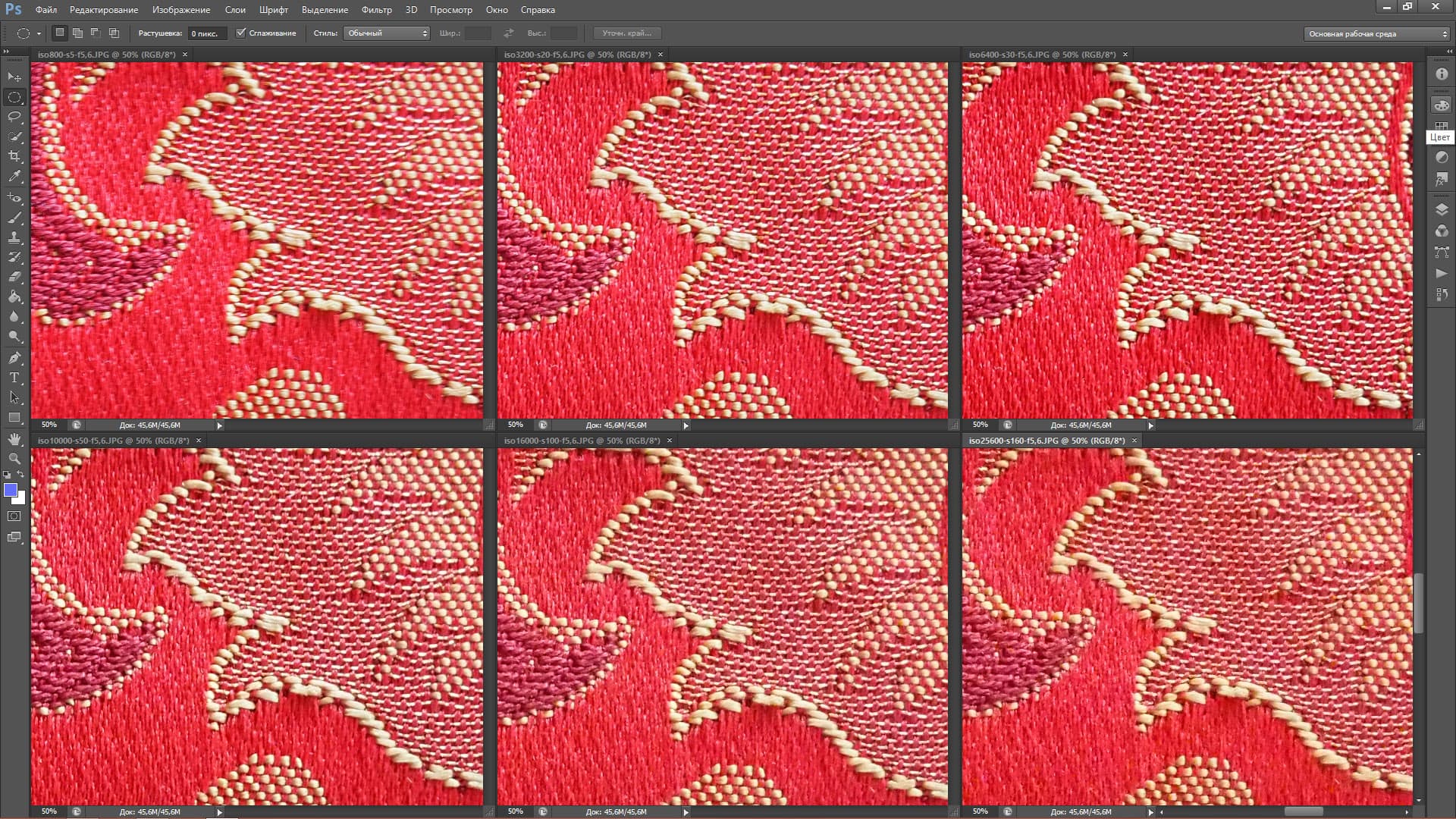 И еще небольшая ремарка. Некоторые кадры, сделанные на ISO 800 немного смазаны — например, второй тестовый кадр (красная ткань с вышивкой) был сделана на выдержке 1/5 секунды. Этого даже с 5-осевым стабилизатором недостаточно, чтобы не было небольшого смаза. Так что некоторые кадры ISO 800 надо было бы забраковать, но мы их оставили, чтобы все тестовые блоки содержали один и тот же набор ISO. Если снимок ISO 800 вызовет у вас нехорошие чувства, смело его не замечайте — это дело рук фотографа, а не вина E-M5 Mark II. Но, поверьте, на презентации делать тестовые кадры не так просто.