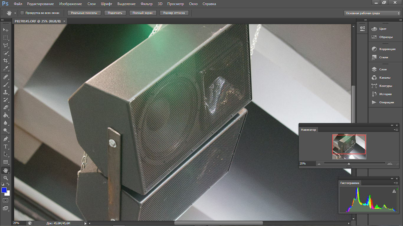 Эти не просто слова я постарался подтвердить кадрами. Их много, больше обычного, но, думаю, всем интересно посмотреть, как снимает новая камера такого класса. Поэтому семплы взяты вместе с полем Adobe Photoshop, так можно оценить качество экспозиции (по гистограмме) и увидеть, какой фрагмент кадра 4608 х 3456 взят в качестве иллюстрации (по навигатору).