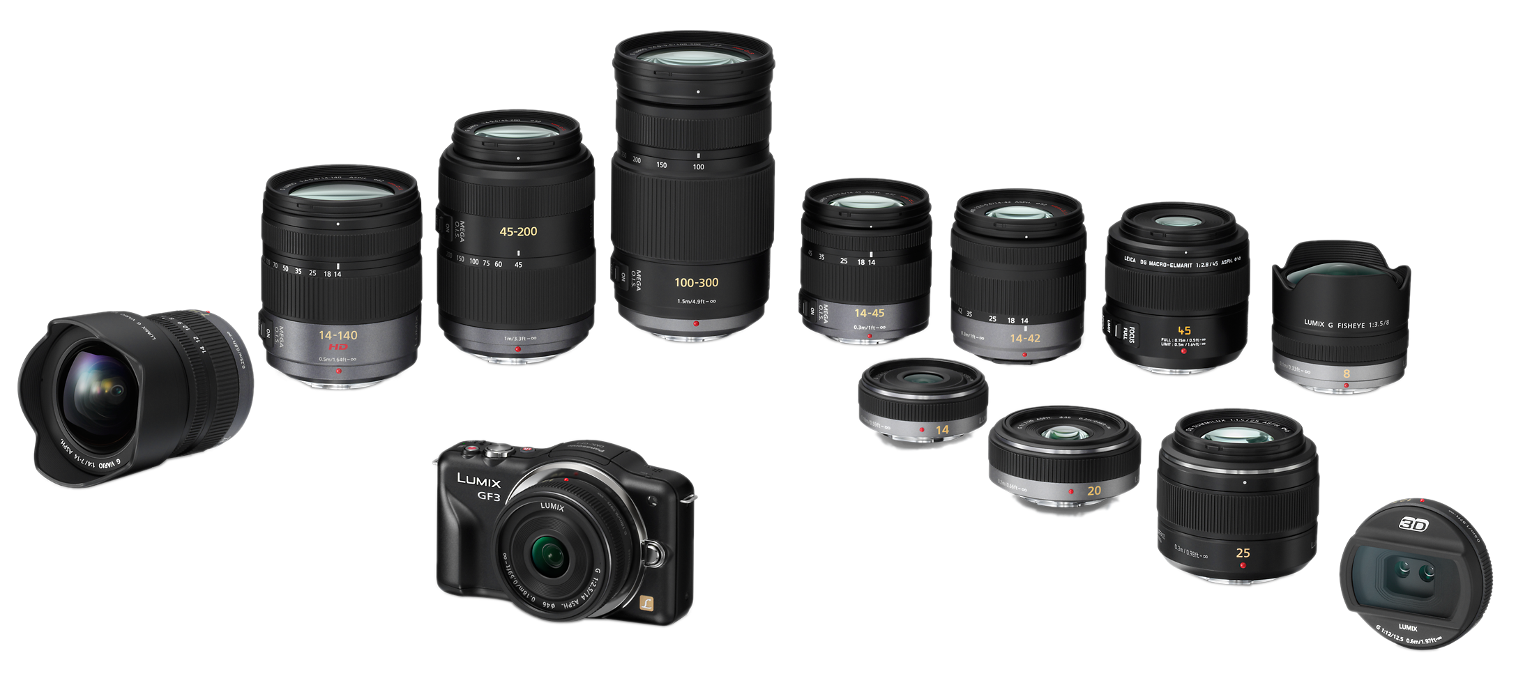 Ещё в 2008 г. зеркальные фотокамеры со сменной оптикой абсолютно доминировали на рынке, выпуск их составлял 8600 тыс. штук в год. В 2010 г. объём выпуска зеркальных камер со сменными объективами возрос до 10 558 тыс. штук. За это же время выпуск незеркальных камер со сменной оптикой увеличился со 112 тыс. штук в год до 1652 тыс. штук в 2010 г. По прогнозам фирмы Panasonic, одного из основных игроков на рынке незеркальных камер со сменной оптикой, к 2013 г. выпуск зеркальных и незеркальнх камер может практически сравняться, составив 10 910 тыс. штук для зеркальных камер и 9090 тыс. для незеркальных. Разнообразие незеркальных камер со сменной оптикой достигло того критического значения, когда появилась необходимость введения более дробных градаций — классов и подклассов фотоаппаратов внутри этого типа. Камера GF3 является не наследницей модели GF2, а первой камерой нового подкласса, который теперь предлагается выделять в серии GF. Камеры нового подкласса — это сверхкомпактные модели, в которых, однако, сменным является только объектив; разъёмов для внешней вспышки или электронного видоискателя на них не предусмотрено. В результате корпус камеры GF3 весит всего 225 г, то есть на 15% легче, чем корпус GF2. Камера также стала и на 17% компактнее. Уменьшение размеров в первую очередь определяется упрощёнными органами управления и отсутствием ряда разъёмов. Размер камеры также уменьшился и за счёт основного модуля, объединяющего байонет с матрицей. Он стал меньше на 4,4 мм по горизонтали и на 2,5 мм по вертикали. Однако такой модуль сделан для всех новых камер, в вышедшей в мае камере G3 используется уже именно он.