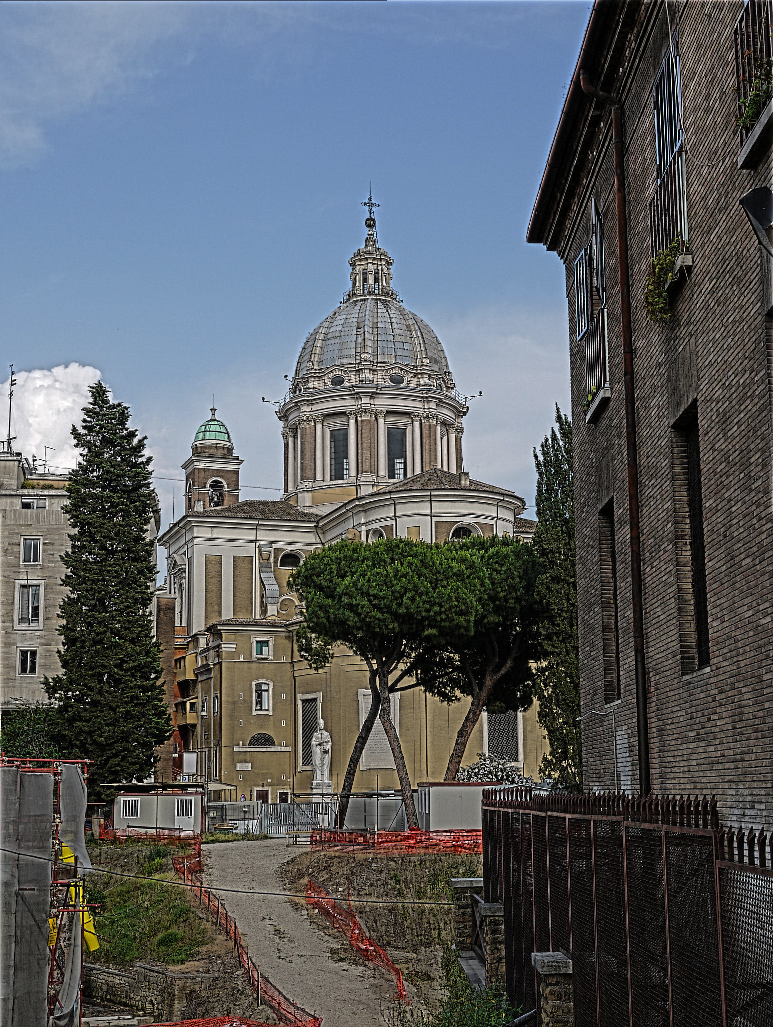 Девушка, конечно, хороша, но для объективной оценки качества объектива требуется, понятно, кое-что другое. К счастью, в Риме с кирпичными стенами дело обстоит отлично: их много, и сложены они хорошими и одинаковыми кирпичами, что и неудивительно. Рим — один из древнейших (со времени принципата Августа: 30 г. до н. э. — 14 г. н. э.) производителей обожжённого кирпича. Из него строили стены, каркасные структуры зданий, арки, использовали для облицовки стен, сложенных из бетона с наполнением травертином, туфом и кирпичным щебнем. Ранее, в период Республики, строители, для того чтобы сгладить впечатление от грубой поверхности бетона или кладки из блоков туфа и кирпича-сырца, маскировали её облицовкой, называемой инцертум, в виде нерегулярного покрытия — чаще всего мелкими с плоской поверхностью камешками. В годы Августа бетон покрывали плоско уложенными кирпичами, образующими сетку, что дало название этой кладке — ретикулат. Август, как следует из Анкирской надписи, принял Рим глиняным, а оставил мраморным. Кирпичные стены скрывали декоративными украшениями из камня и мрамора, ранее практически не употреблявшегося, а на закате Римской империи, во времена домината, стали покрывать штукатуркой, мозаикой, мраморной плиткой. Позднее византийцы перестали скрывать кладку из кирпича — этот характерный элемент романского архитектурного стиля. Мрамор и облицовочный камень смогли продержаться на зданиях недолго. Пожары (сильный пожар 283 г. частично разрушил Форум), нашествия (готов в 410 г.) и войны (после захвата Рима в 1527 г. в ходе противостояния Франции и Испании жизнь в полной мере вернулась в него лишь через 60 лет) разрушали город и вынуждали жителей строить новые дома и целые районы, используя древние здания как источник мрамора и камня. В результате в любой точке Рима сегодня можно видеть ретикулат — прекрасную тестовую мишень для испытания объективов.