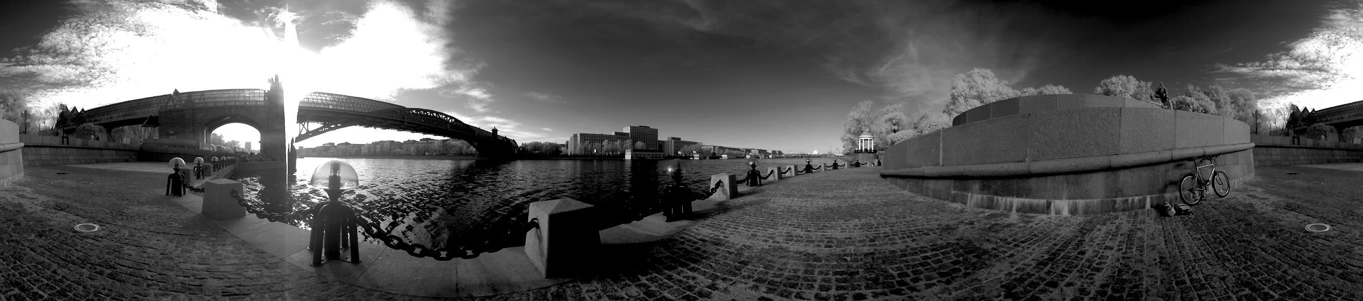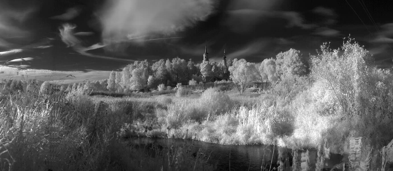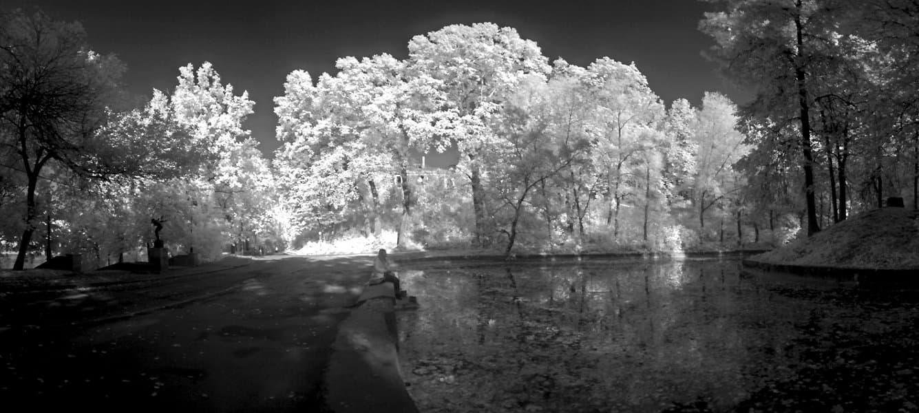 Чувствительность к ИК диапазону это прекрасно. Даже без использования фильтров, пропускающих только в области с длиной волны более 800 нм, черно-белое изображение, формируемое светом, как видимого, так и инфра-красного диапазона, получается очень любопытным. В этом случае днем света хватает в избытке и сильное диафрагмирование позволяет не обращать внимания на то, что точки фокусировки для этих диапазонов несколько отличаются.