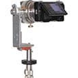 Система рассчитана на работу с конкретным объективом, и поэтому крепление сделано не через штативное гнездо камеры, а с помощью кольца, охватывающего насадку. В этом случае данная конкретная насадка позволяет установить кольцо в плоскости, пересечение которой с оптической осью является центром перспективы, т. е. точкой, вращение вокруг которой обеспечит нам отсутствие параллакса при повороте камеры. Другими словами, объекты на переднем плане всегда будут закрывать одни и те же объекты на заднем, вне зависимости от того, в какой части кадра они оказались при повороте. В кольце сделаны две выемки, через которые при установке проходит кнопка блокировки байонета. Две выемки необходимы для того, чтобы обеспечить как горизонтальное, так и вертикальное положение камеры при съемке. Фиксация объектива в кольце осуществляется винтом. Чтобы не повредить оправу, в центре винта просверлено отверстие, в которое вставлен пластмассовый стержень, который и упирается в объектив, фиксируя его. Вращение относительно горизонтальной оси фиксируется двумя винтами. Один винт с контргайкой ввинчивается внутрь втулки, укрепленной на кольце, второй — упирается в нее снаружи. В принципе, эта конструкция избыточна: для работы хватило бы любого из способов фиксации. Однако винты имеют тенденцию теряться, и в данном случае несколько избыточных граммов веса за дублирование вполне оправданы.