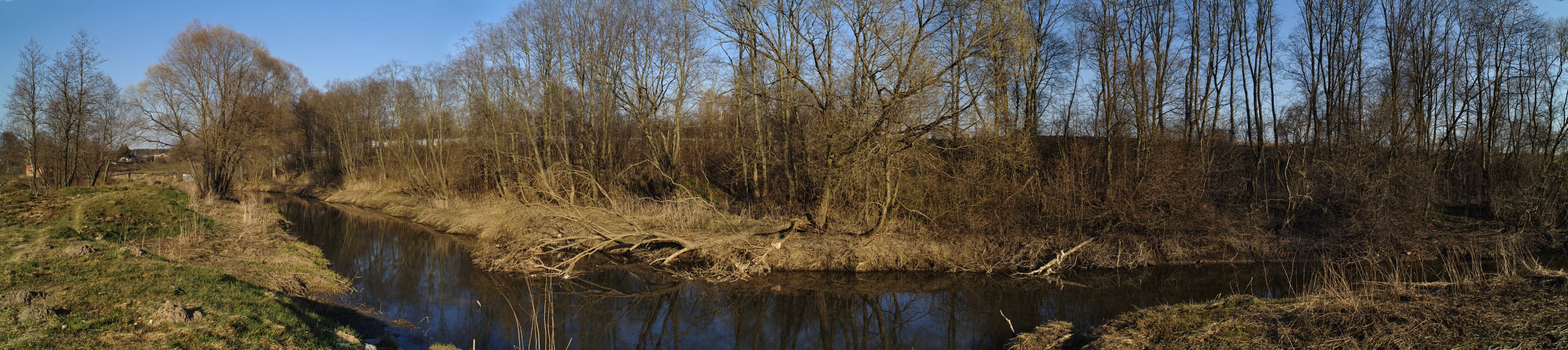 Объектив Мир 24 F=35 мм, камера Canon 5D — сшито программой Hugin, пять ландшафтно ориентированных кадров в эквидистантной проекции. Щелкнув мышкой по миниатюре, можно увидеть кадр размером 11923×2664 пикселя.