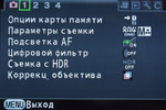 | Режимы съемки | «Зеленый режим», P — программный, Sv — приоритет чувствительности, Tv — приоритет выдержки, Av — приоритет диафрагмы, TAv — приоритет выдержки и диафрагмы, M — ручной режим, Bulb, X — режим синхронизации со вспышкой. Гиперпрограммные режимы (оперативный переход из программного в приоритет выдержки или приоритет диафрагмы поворотом селектора). Гиперручной — оперативный переход к автоматической настройке экспозиции при помощи зеленой кнопки. Память 3 комплектов пользовательских настроек (User), автоматическая коррекция ярких участков изображения, настраиваемая коррекция теней, режим HDR (съемка и автоматическое объединение 3 кадров с разной экспозицией). |