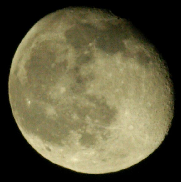 Луна, снятая Рубинаром, подсоединенным к аппарату через подточенный переходник. Фрагмент кадра. ISO-800, 1/500 с, F/8. Между корпусом объектива Рубинар и выступающей частью отсека со вспышкой зазор практически отсутствует. Возможно, с некоторых экземпляров этого объектива, во избежание появления царапин на корпусе камеры, придется снимать фаску.