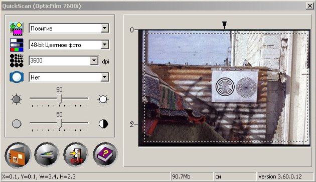 QuicqScan произвела хорошее впечатление. Она позволяет сканировать в с глубиной цвета в 48 бит, что позволяет тонкую коррекцию производить уже в графическом редакторе, не опасаясь потерять информацию. К сожалению она не умеет работать со сканированием в ИК диапазоне. На мой взгляд, если бы была возможность записать в отдельный файл отсканированное в ИК диапазоне изображение, то в дальнейшем его можно было бы использовать как маску для удаления пылинок в графическом редакторе, и необходимость в дорогой программе SilverFast не возникла бы.