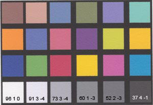Для тех, кого интересует более детальное сравнение, приведем фрагменты сканов мишени с цветовой таблицей Macbeth и координатами цвета серых полей в пространстве Lab, измеренными в Photoshop (с помощью сканера Epson 4870, как это описано в прошлых статьях):