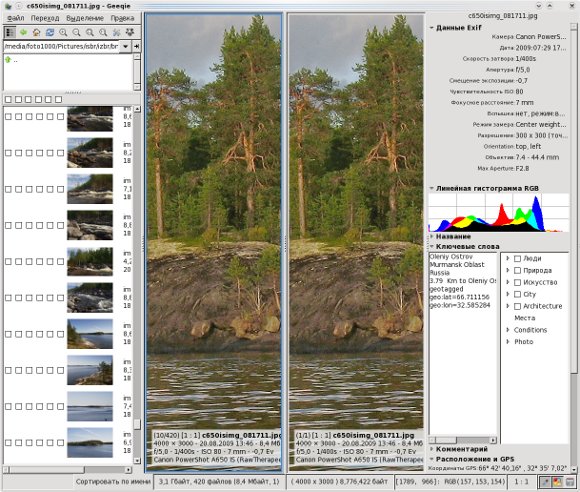 | Geeqie Image Viewer новая «ветка» GQview с улучшенной поддержкой IPTC, в том числе и написанных кириллицей. С сырыми форматами новых камер есть проблемы. Я использую ее как основную программу просмотра фотографий под Linux. | ||||